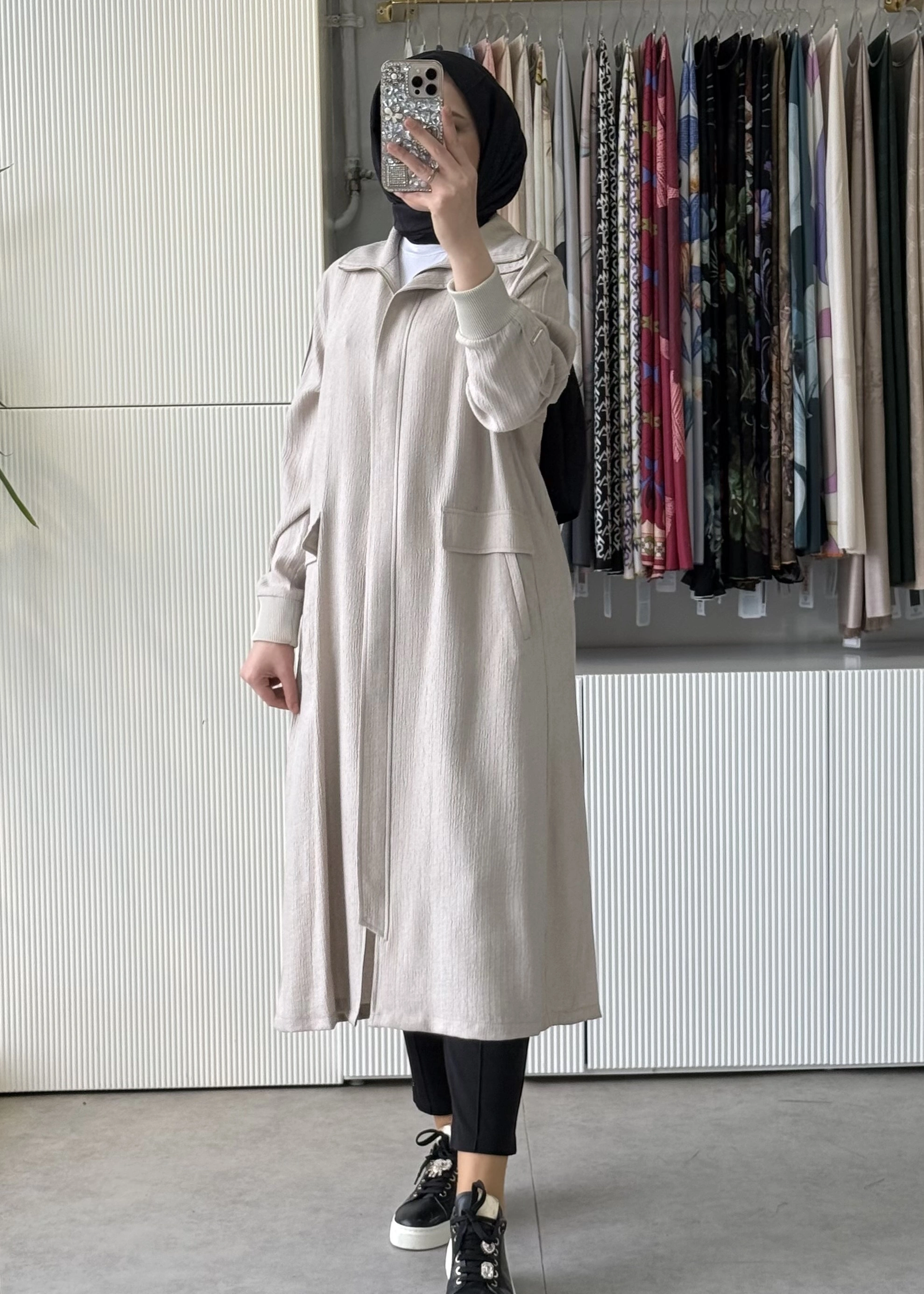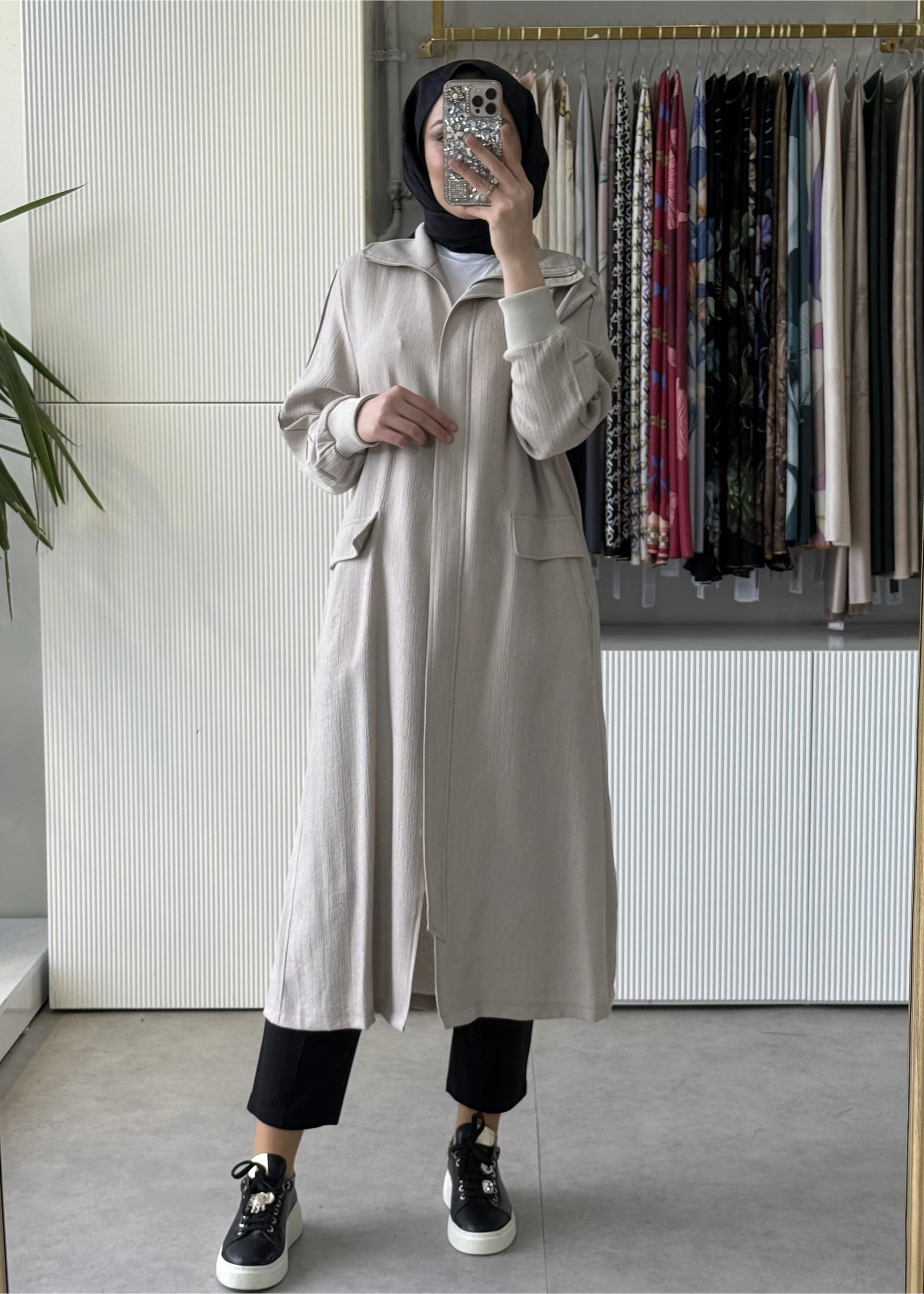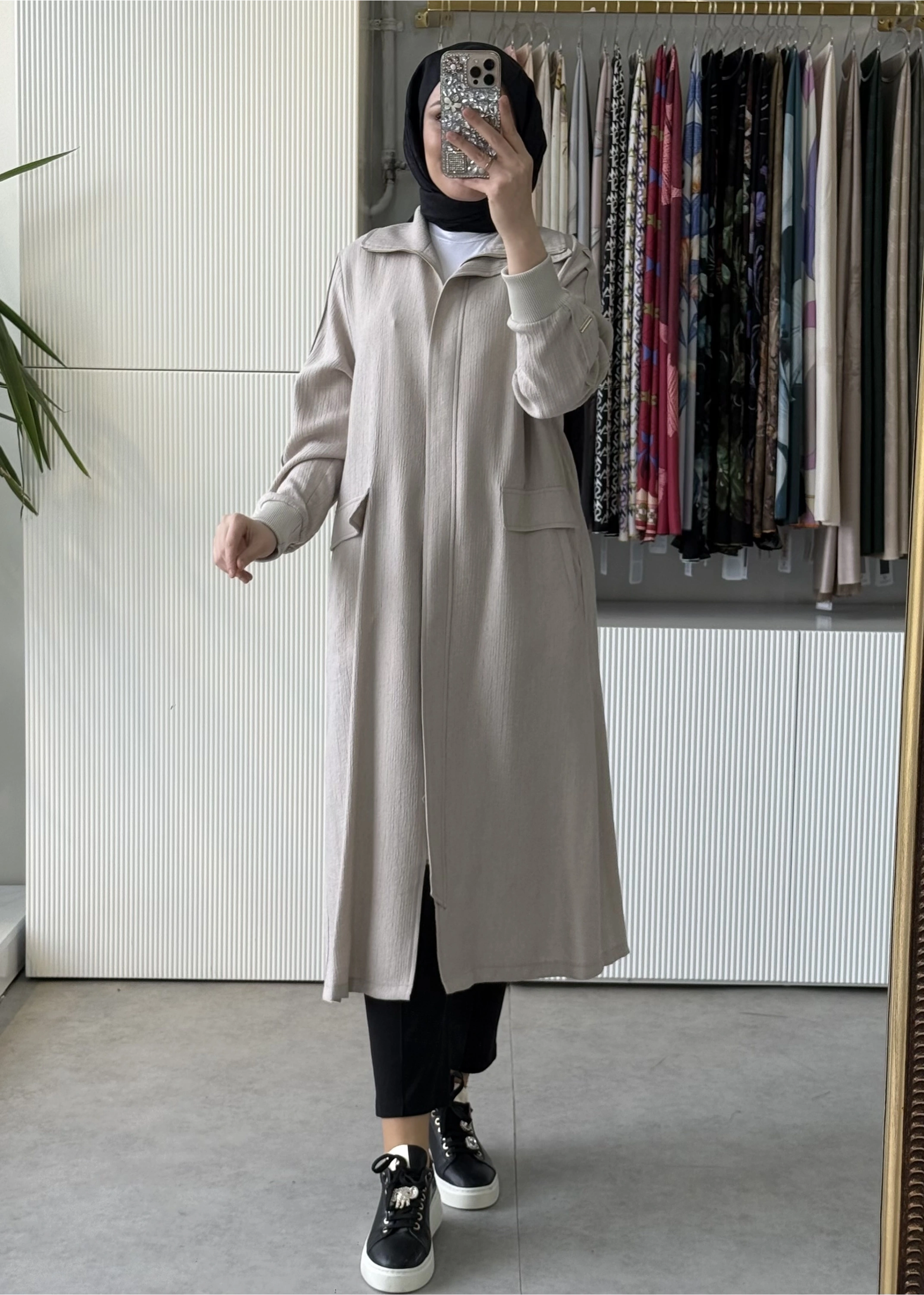 FUAT GÜRSEN Kırıştırma Kumaş Önden Fermuarlı Tasarım Kap Taş 5607