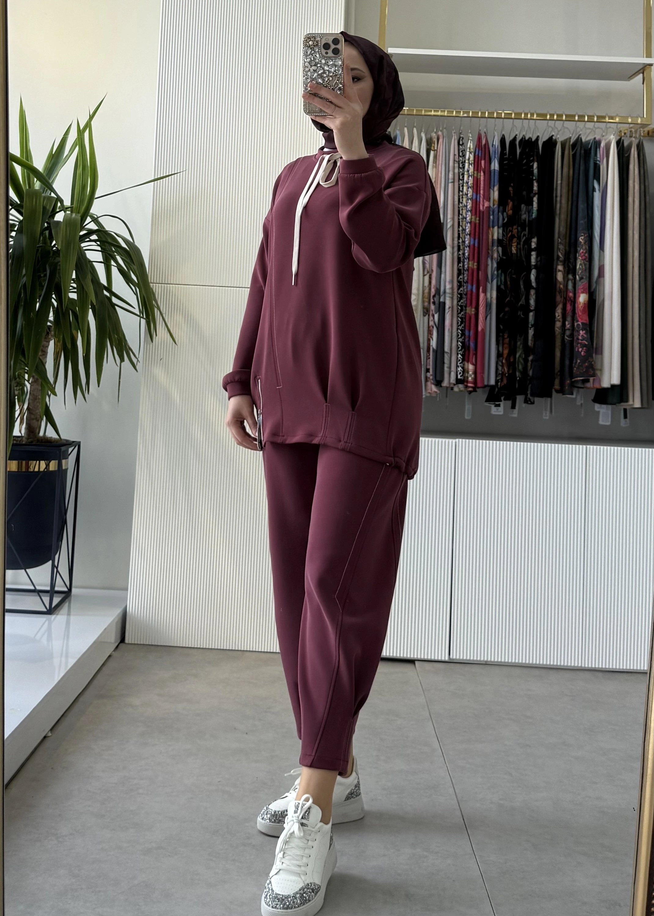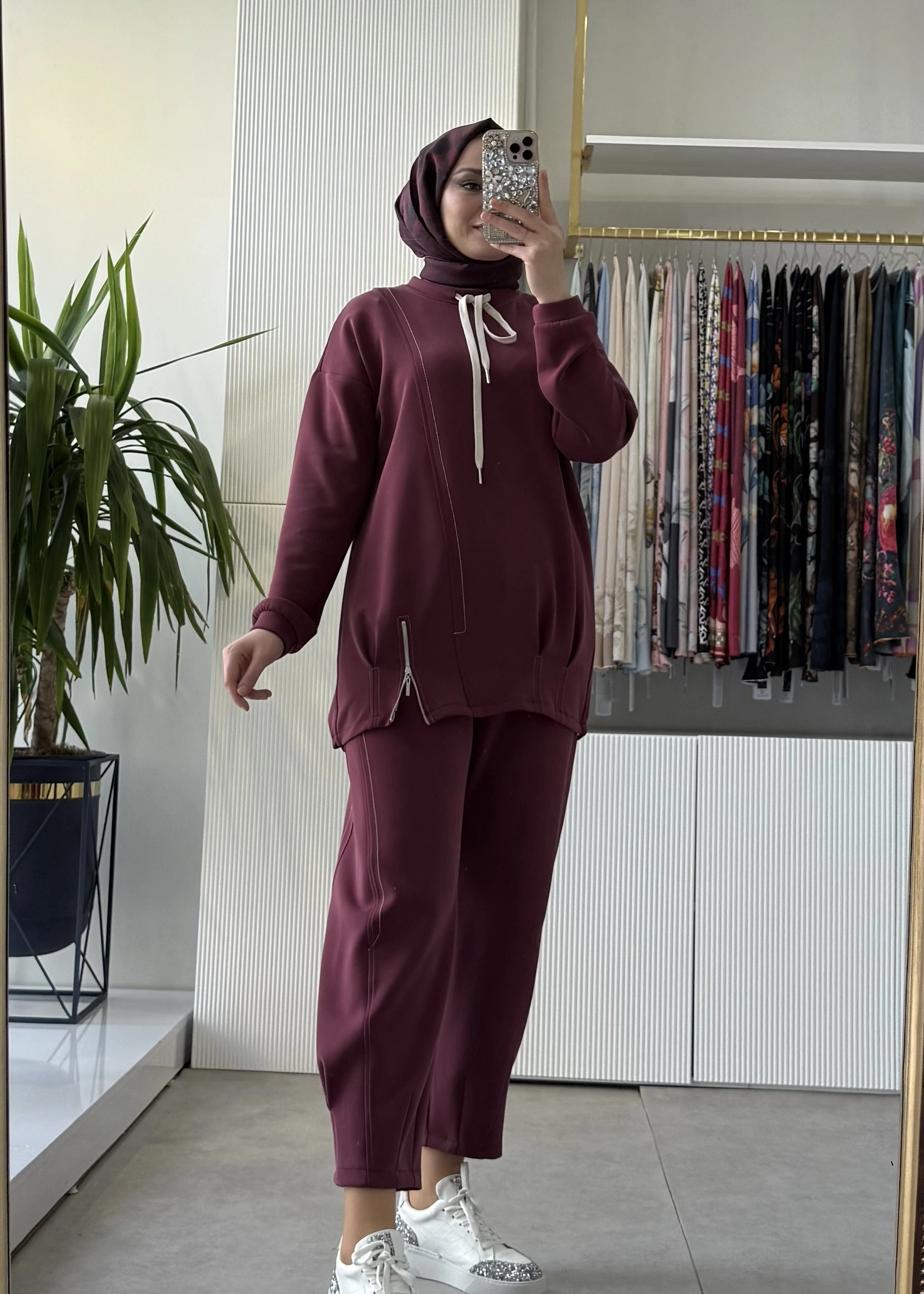 FUAT GÜRSEN Rahat Tunik Pantolon Takım Bordo 4311