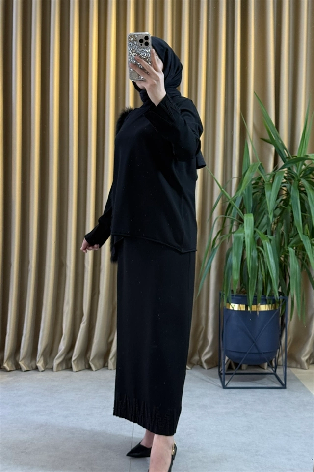 MissWhence Miss268 Kürklü Triko Tunik Siyah
