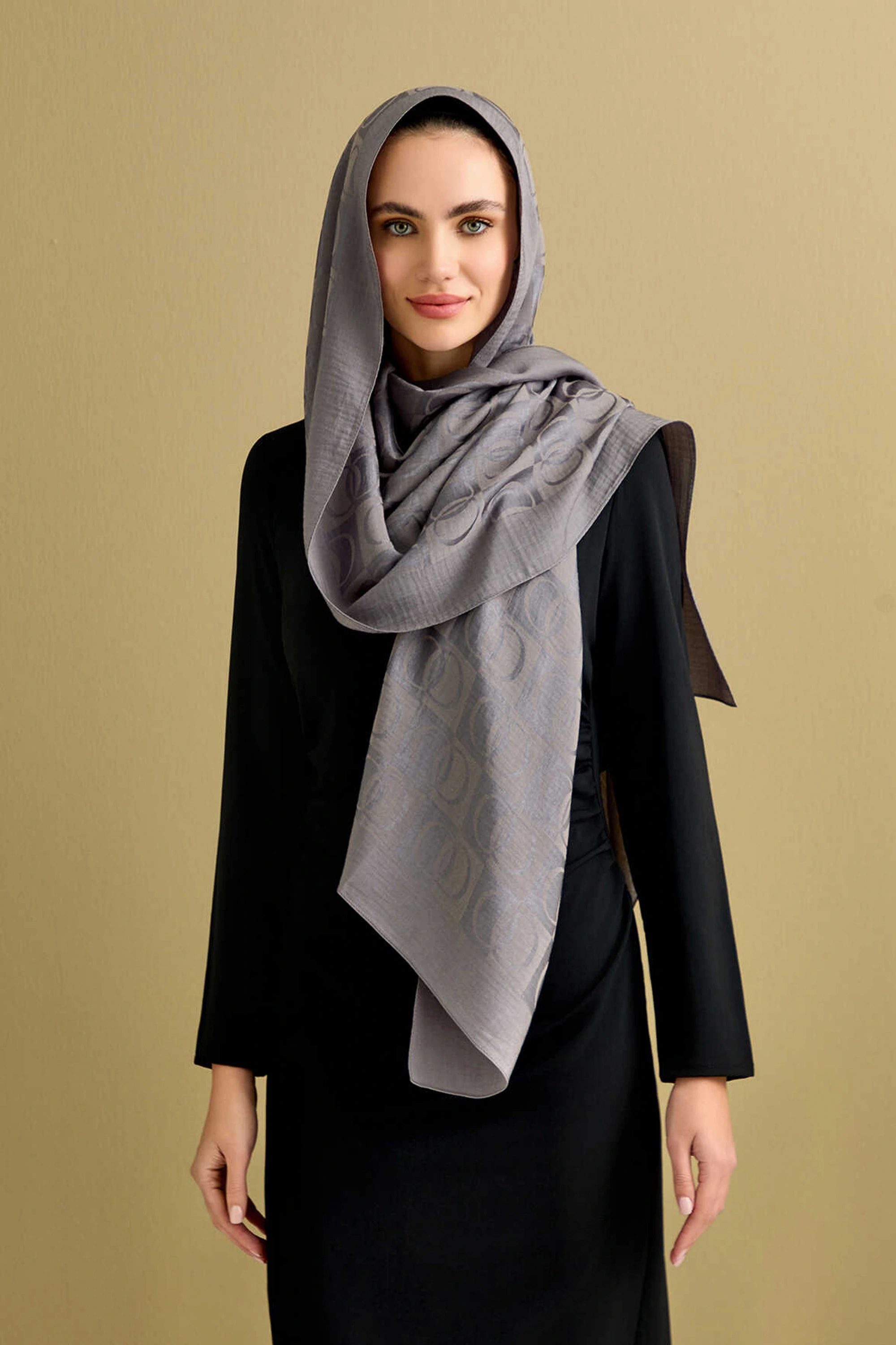 İmannoor Orijinal Dama Desen Antrasit Naia Pamuk Şal 70x200