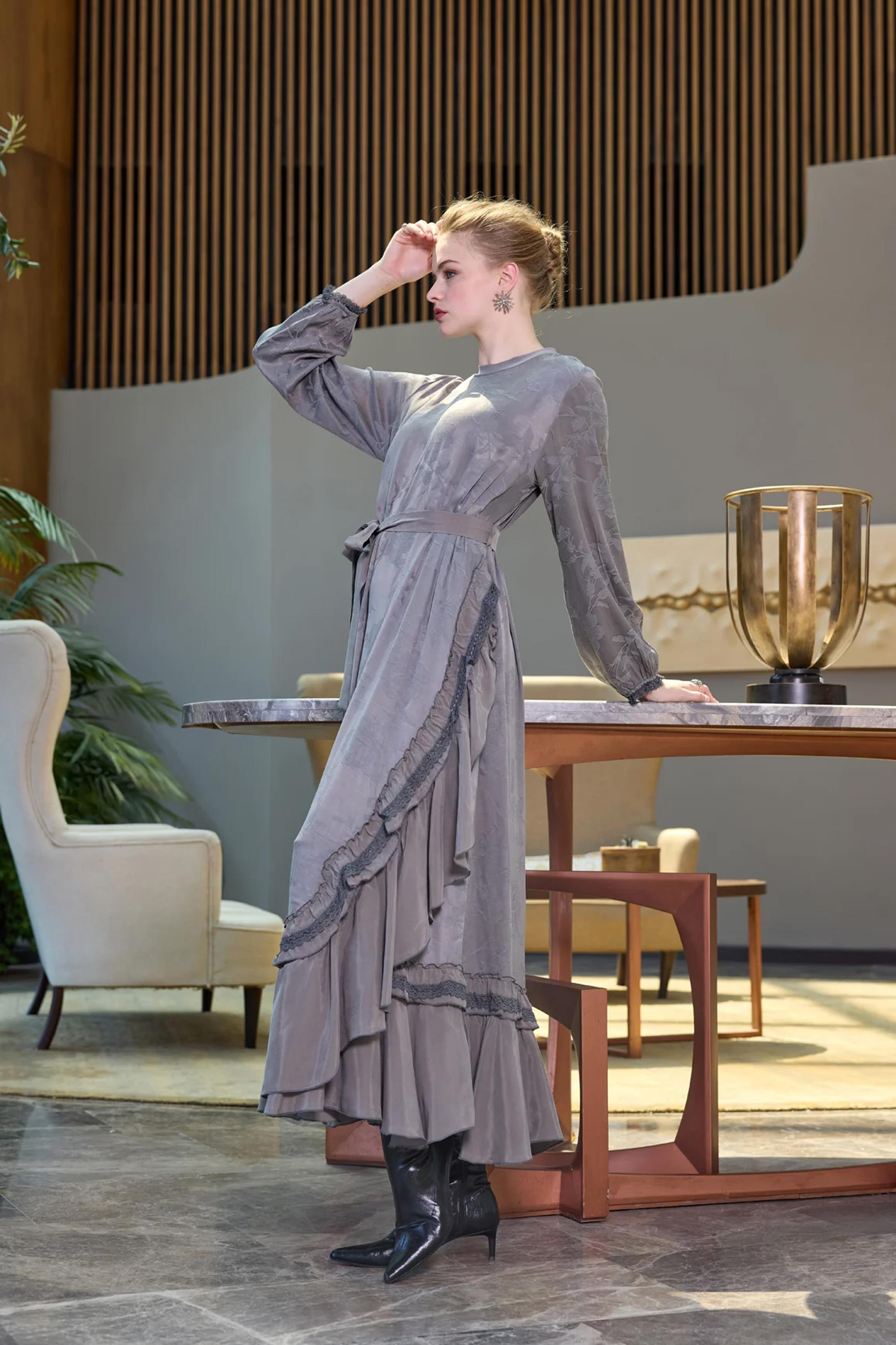 MissWhence 38806 Cupro Dantel Detaylı Elbise Gri