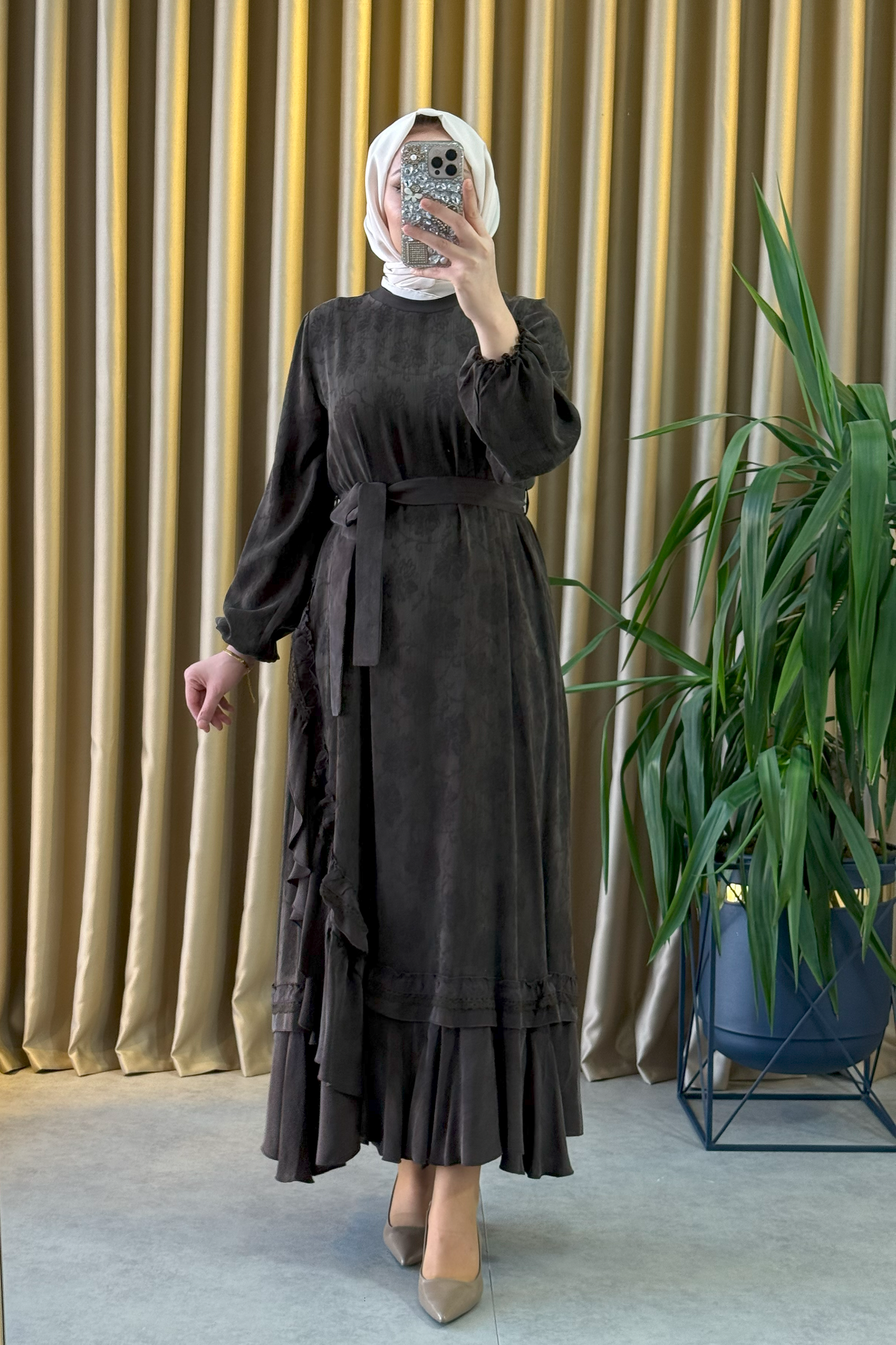 MissWhence 38806 Cupro Dantel Detaylı Elbise Kahverengi