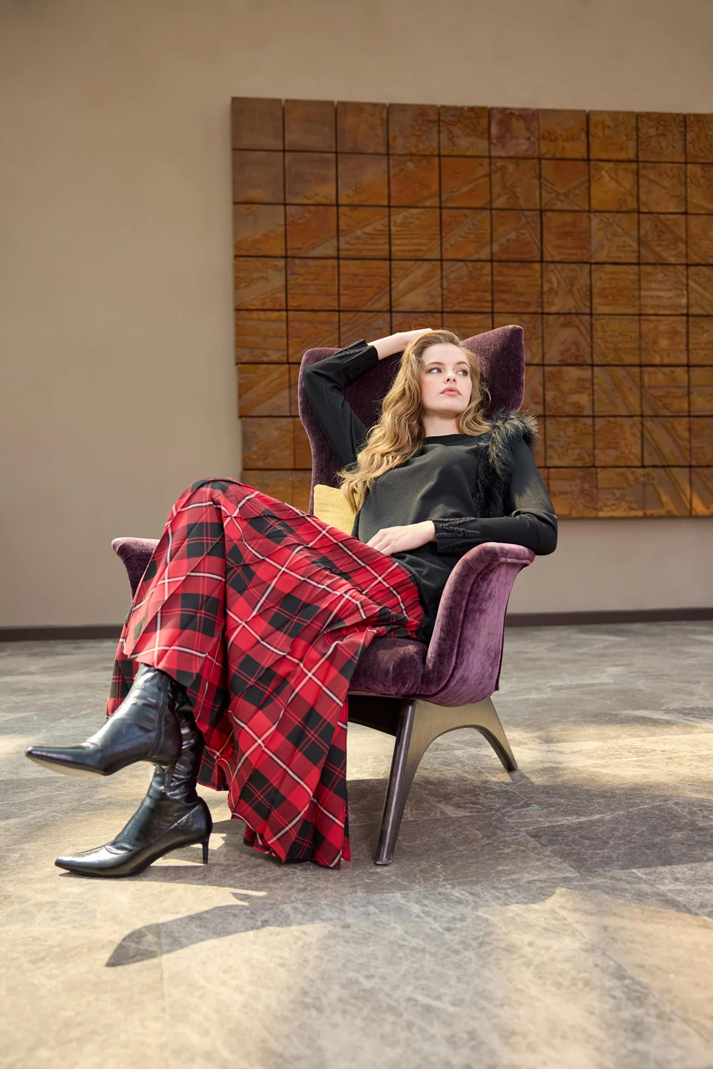 MissWhence 38902 Plise Etek Kırmızı Ekose