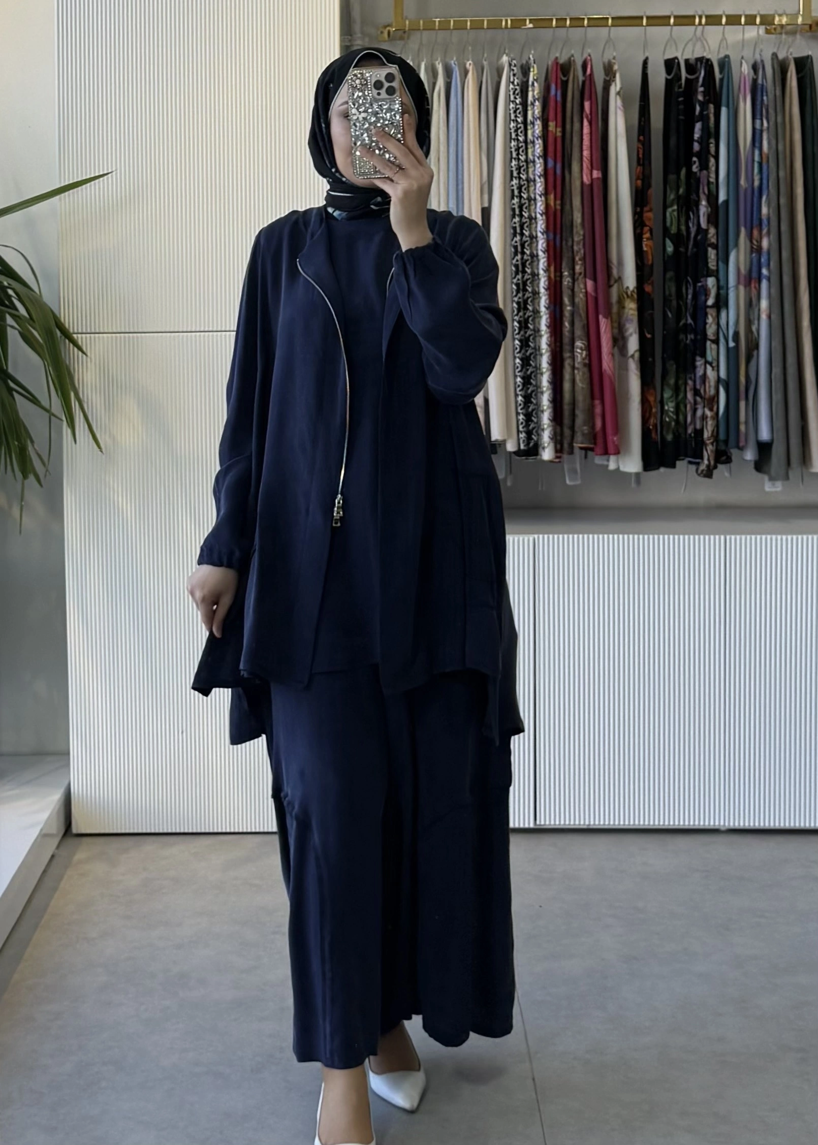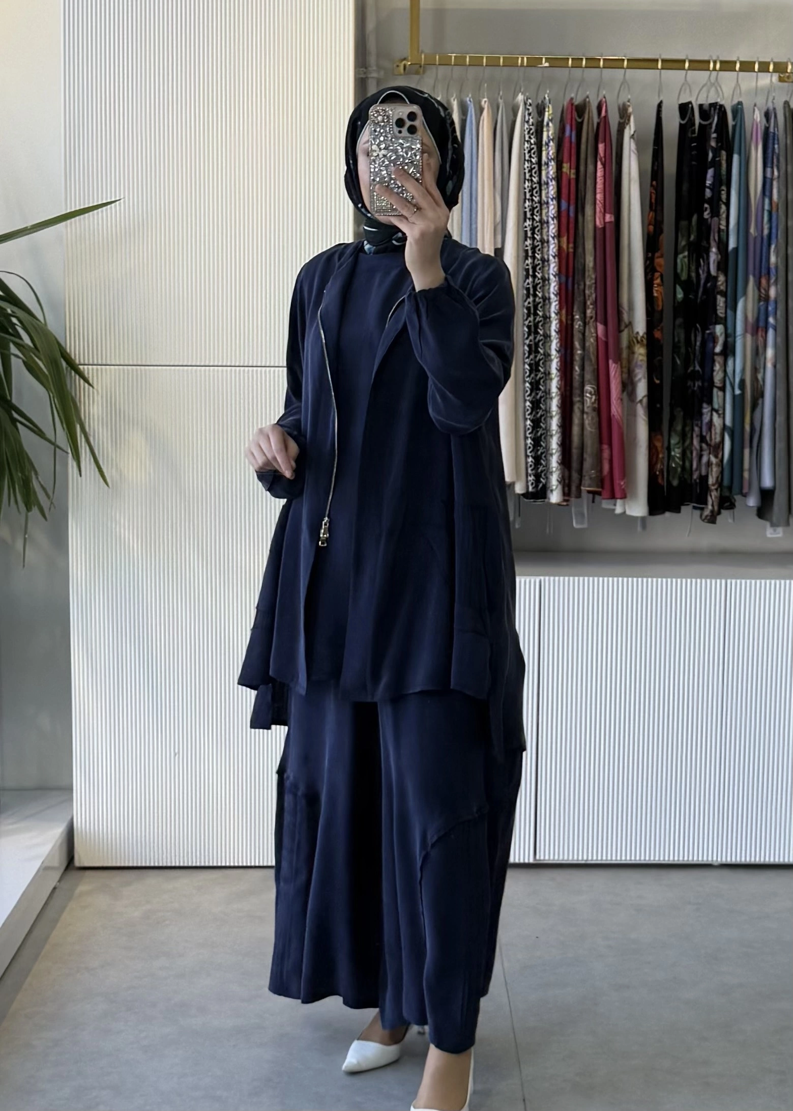 Misswhence 39208 Üçlü İpek Takım Lacivert