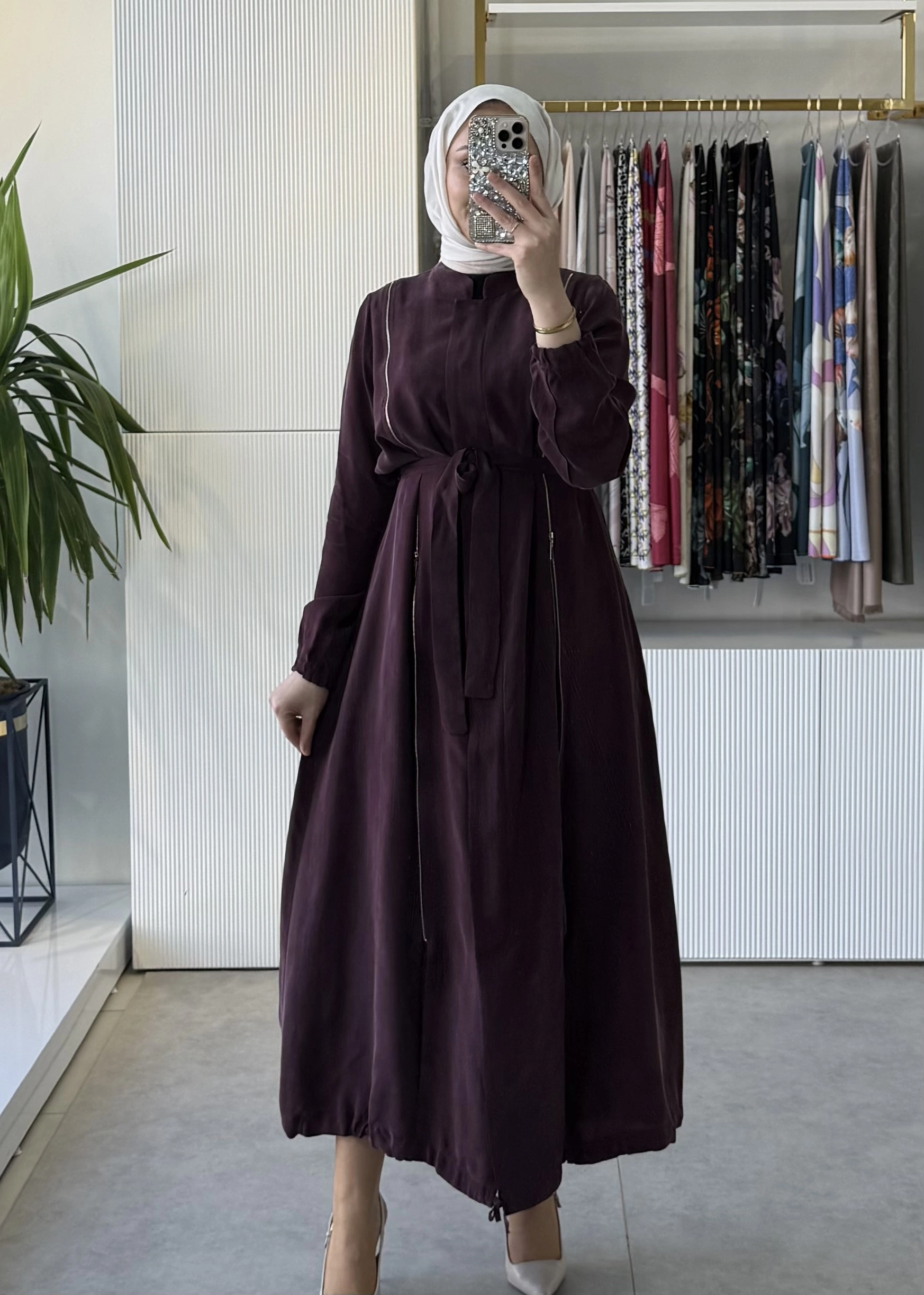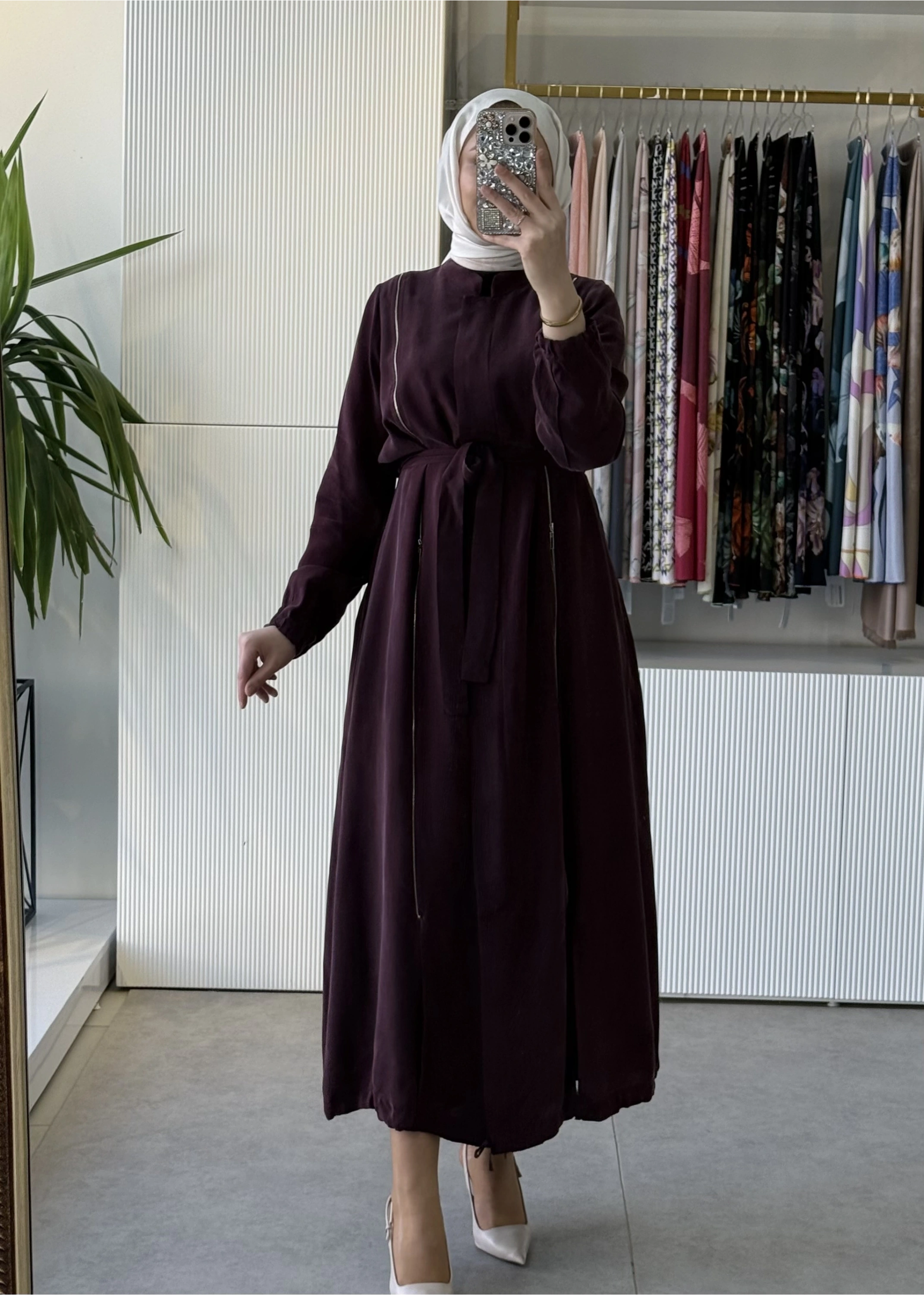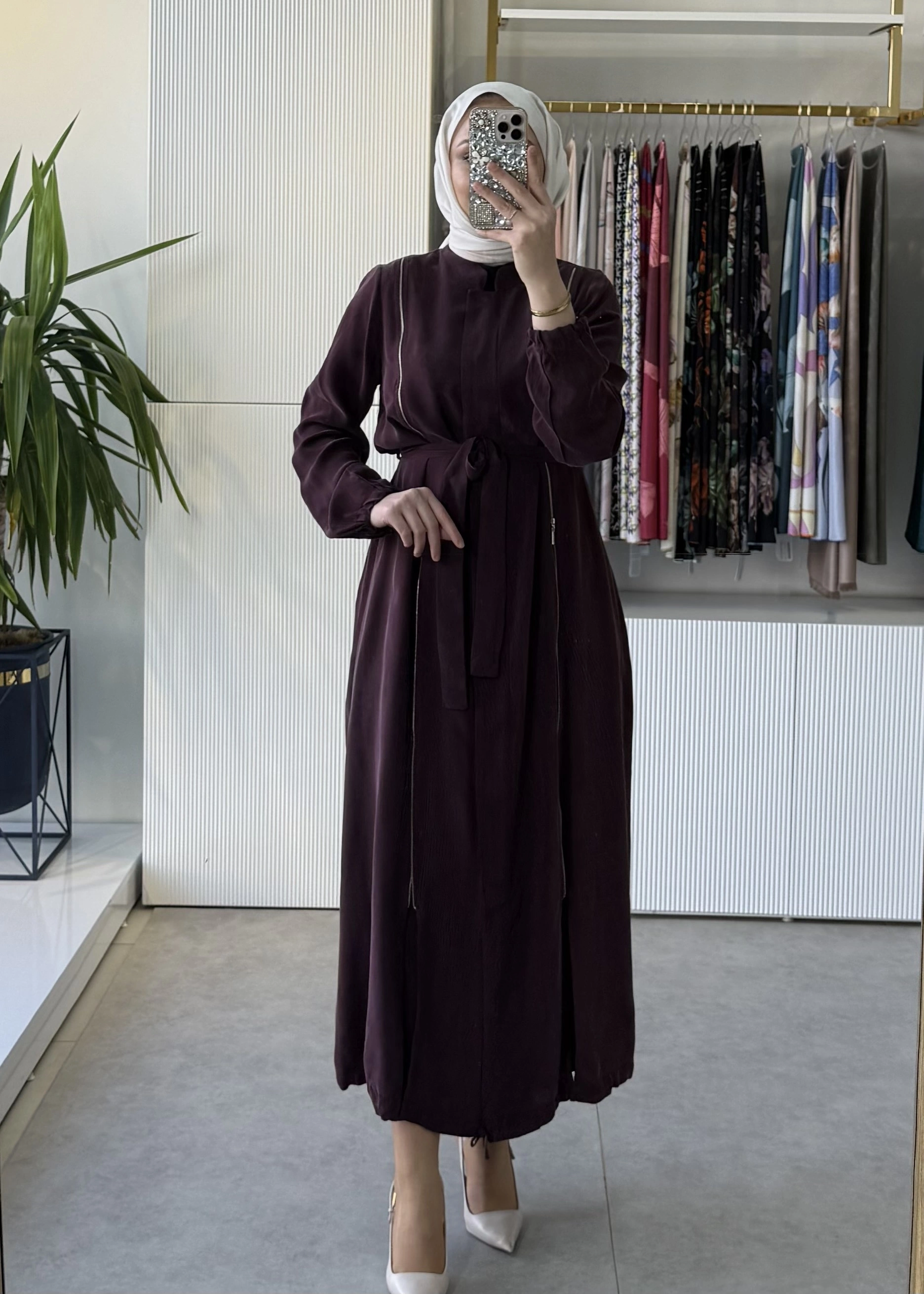 Misswhence 39501 Fermuar Detaylı İpek Ferace Bordo