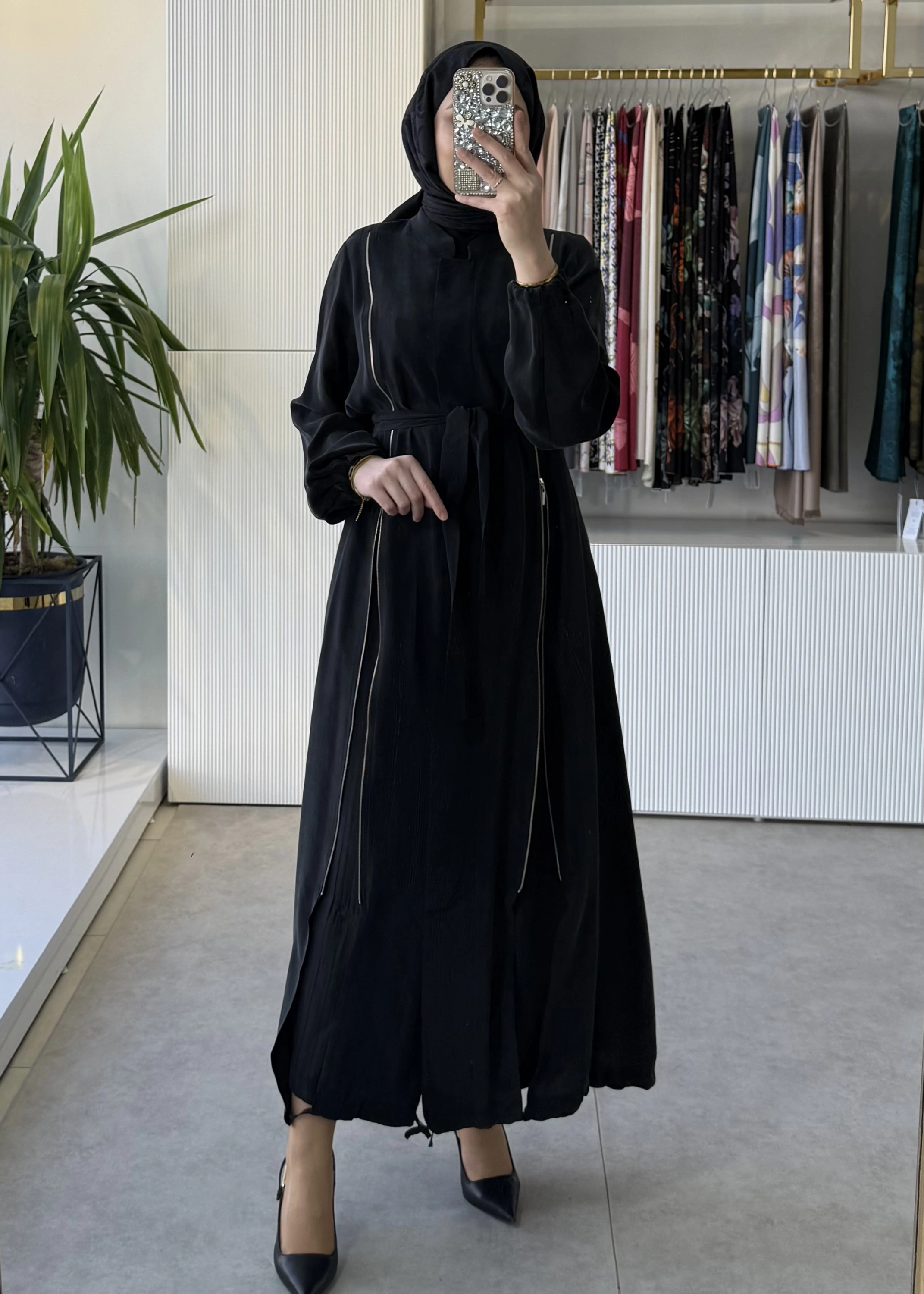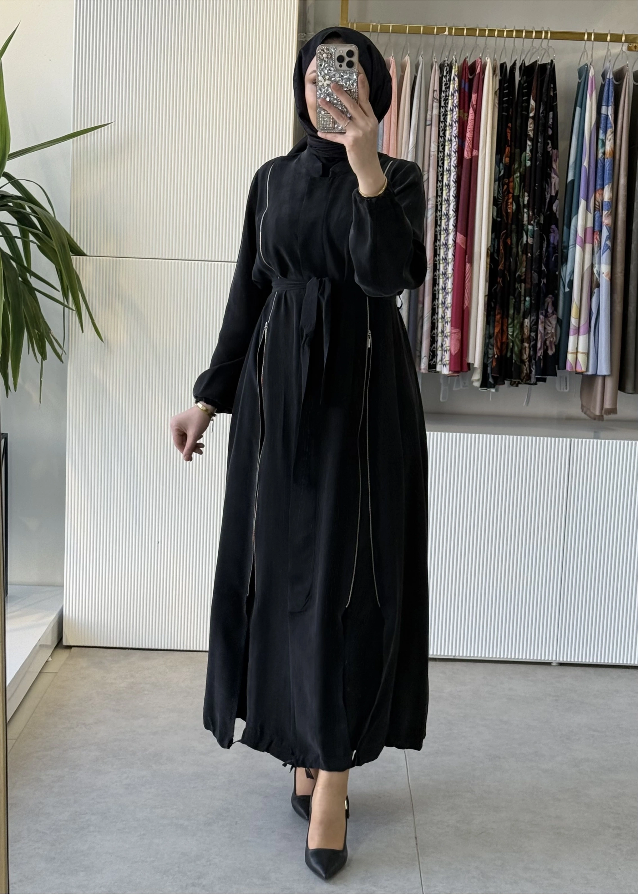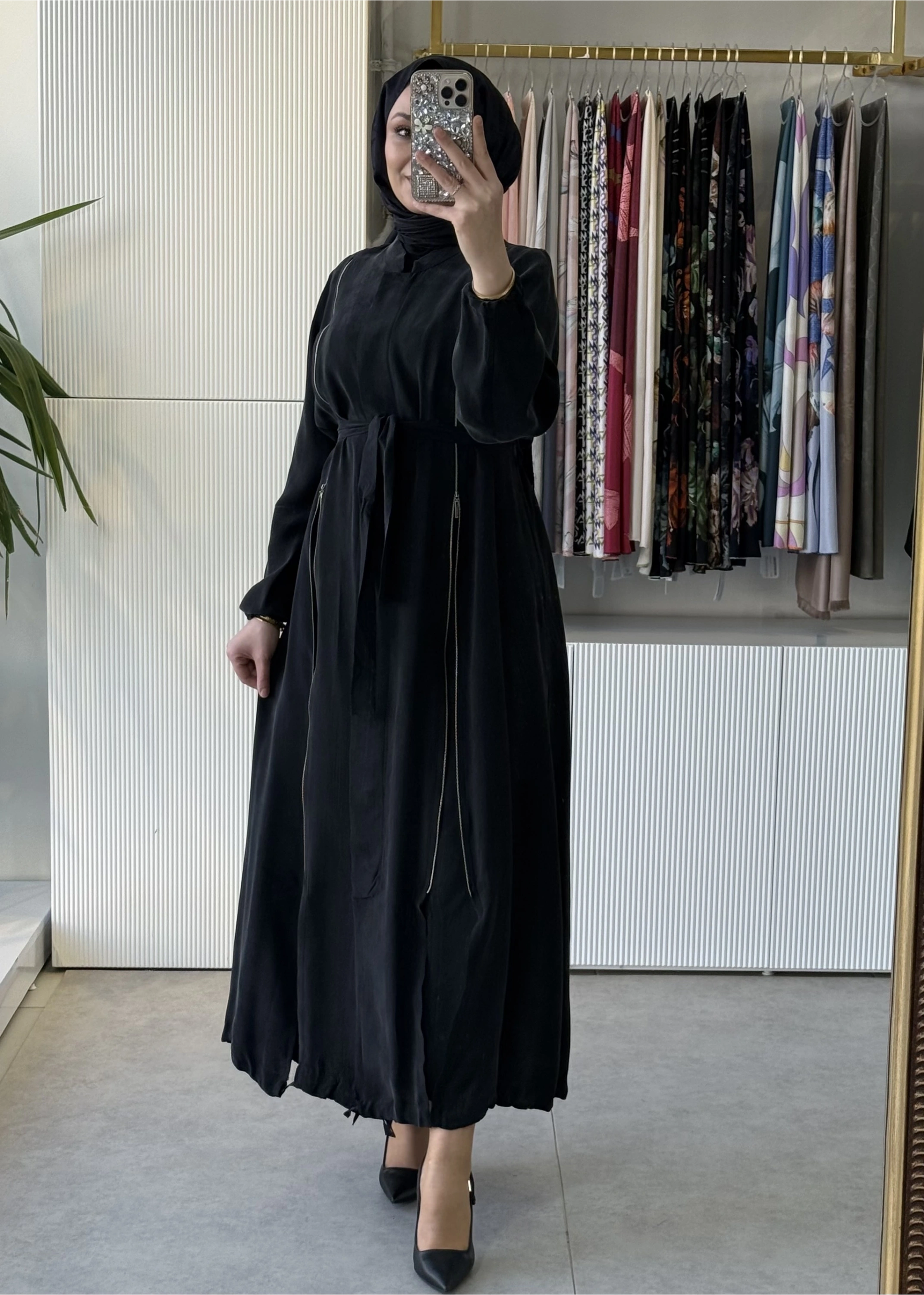 Misswhence 39501 Fermuar Detaylı İpek Ferace Siyah