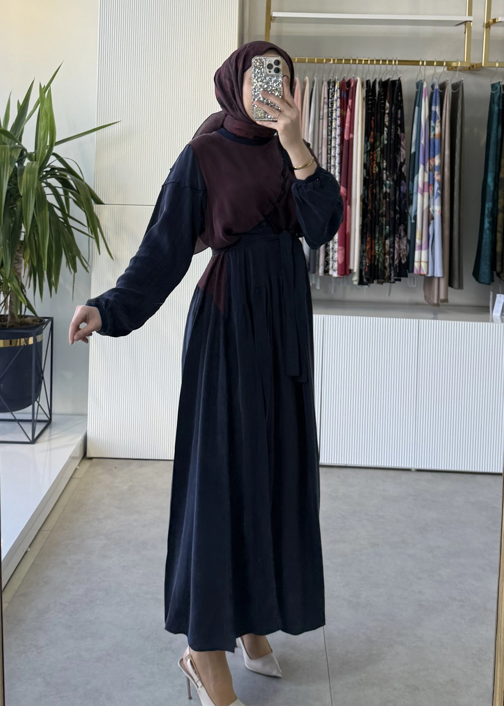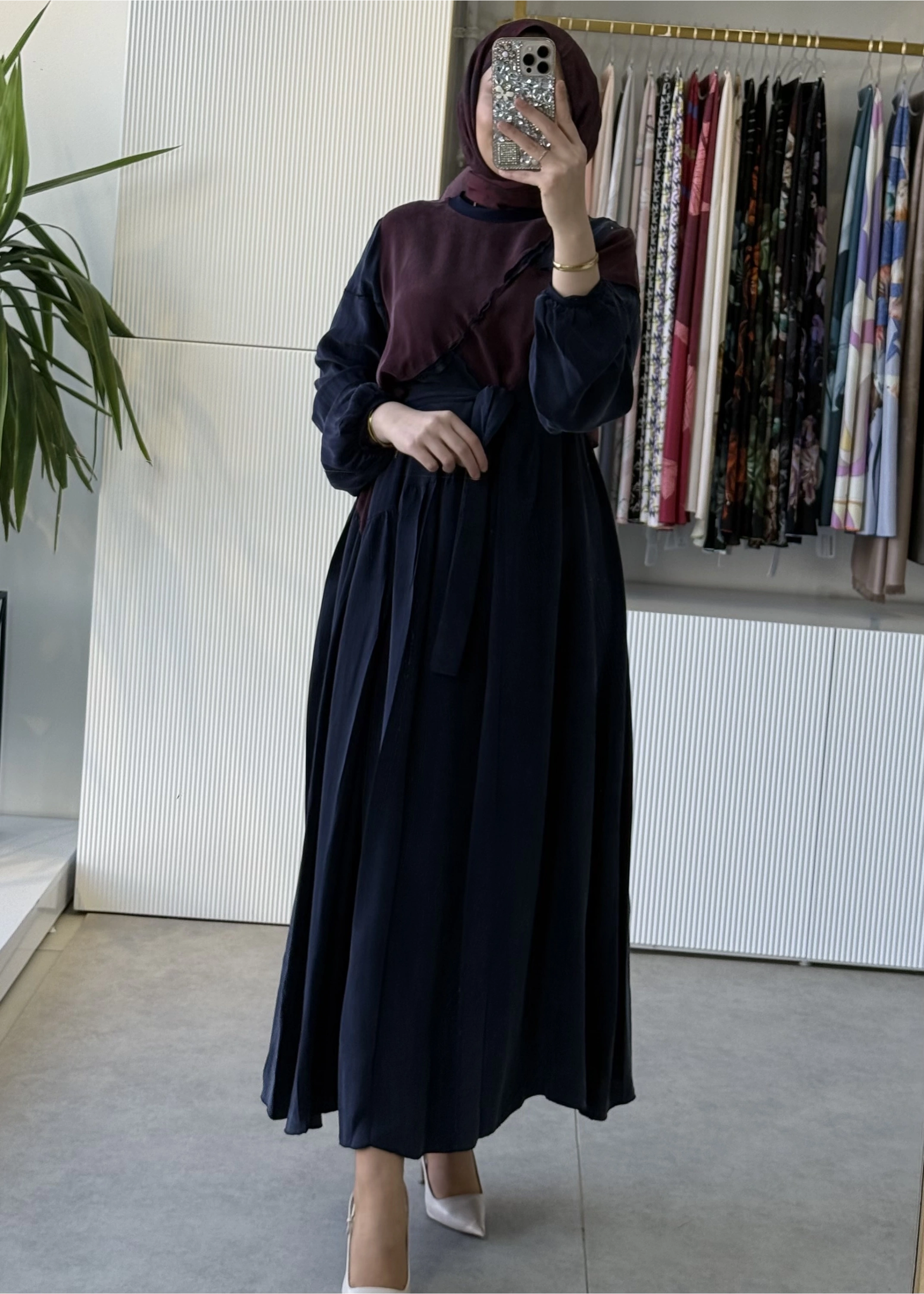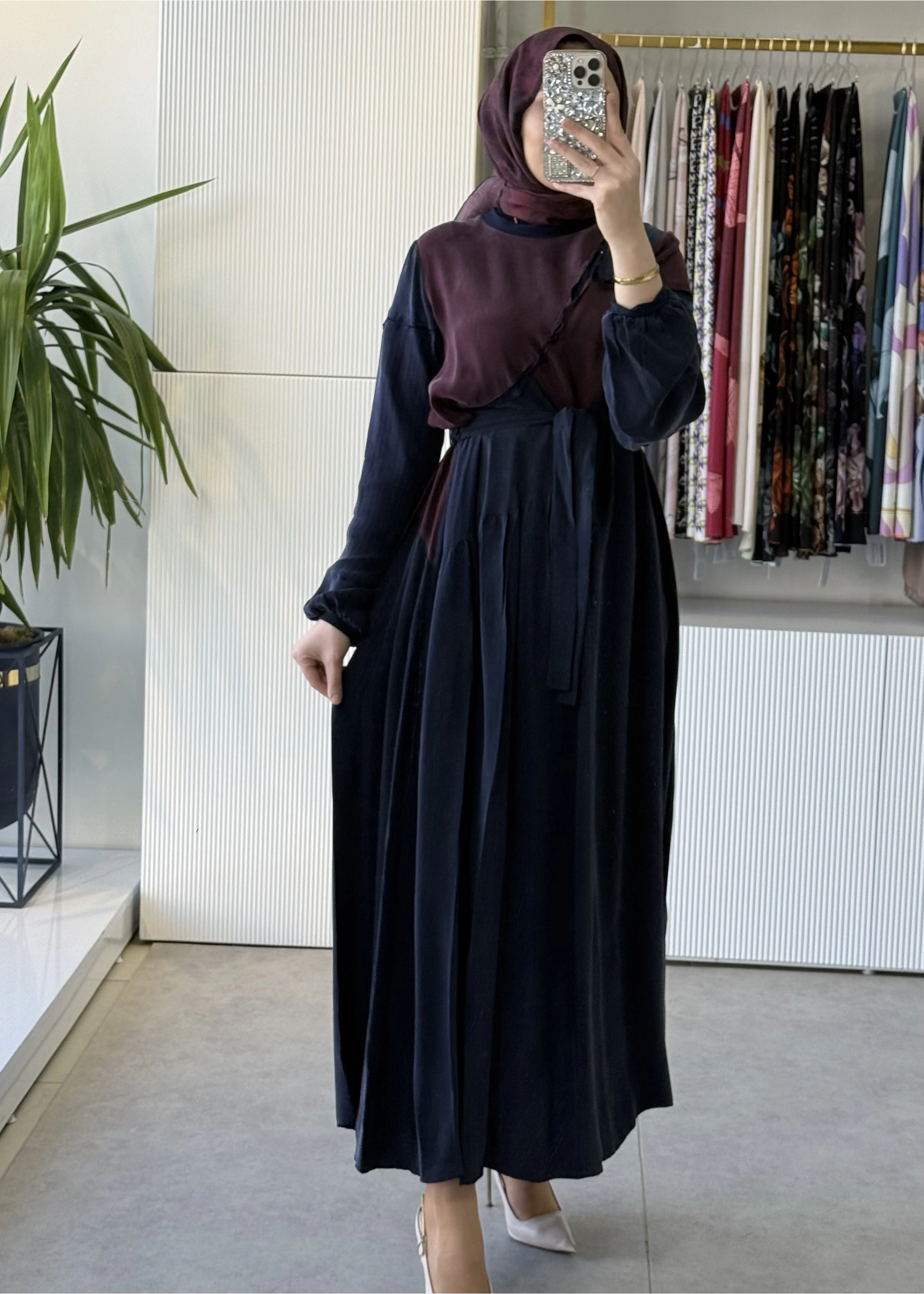 MissWhence 39801 Patchwork İpek Elbise Lacivert