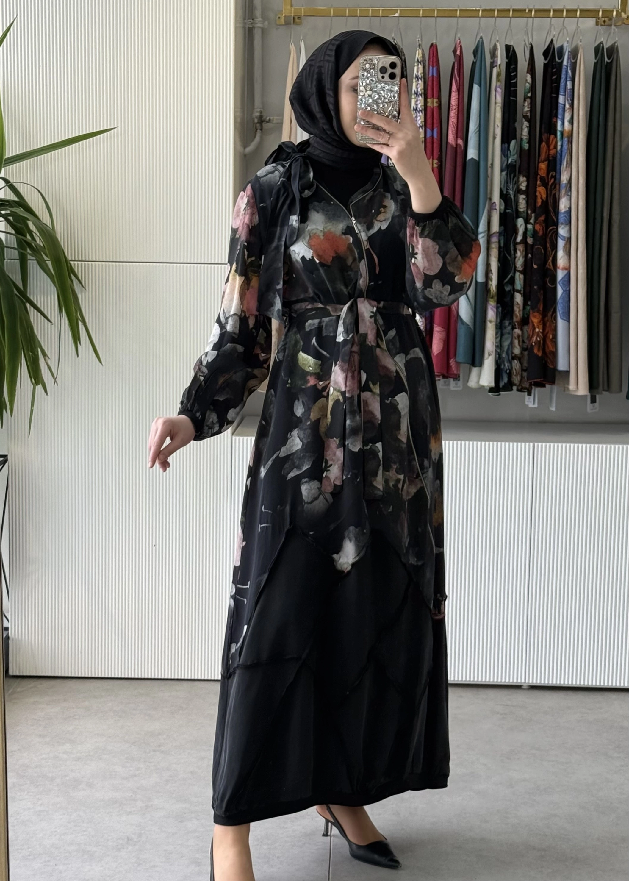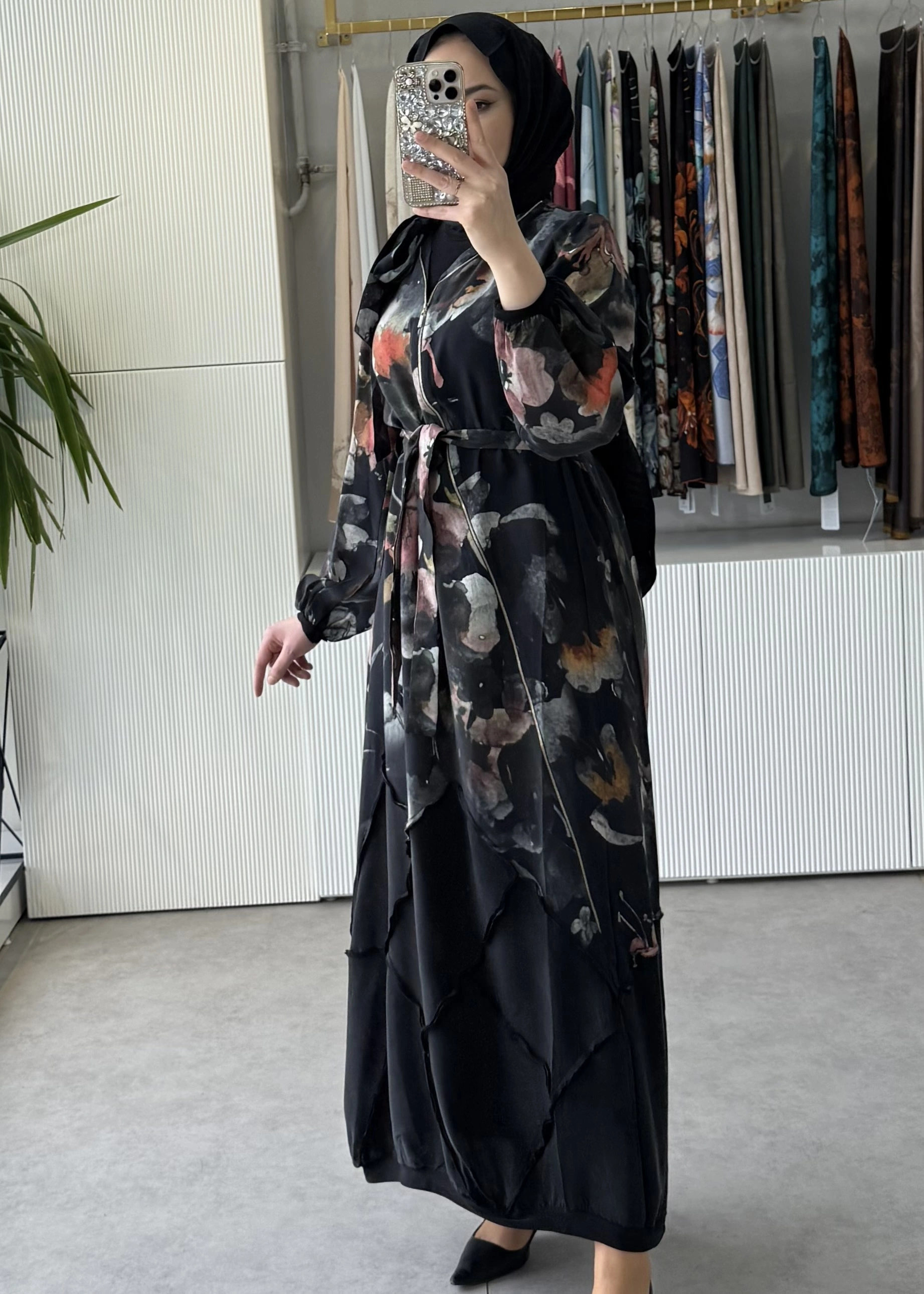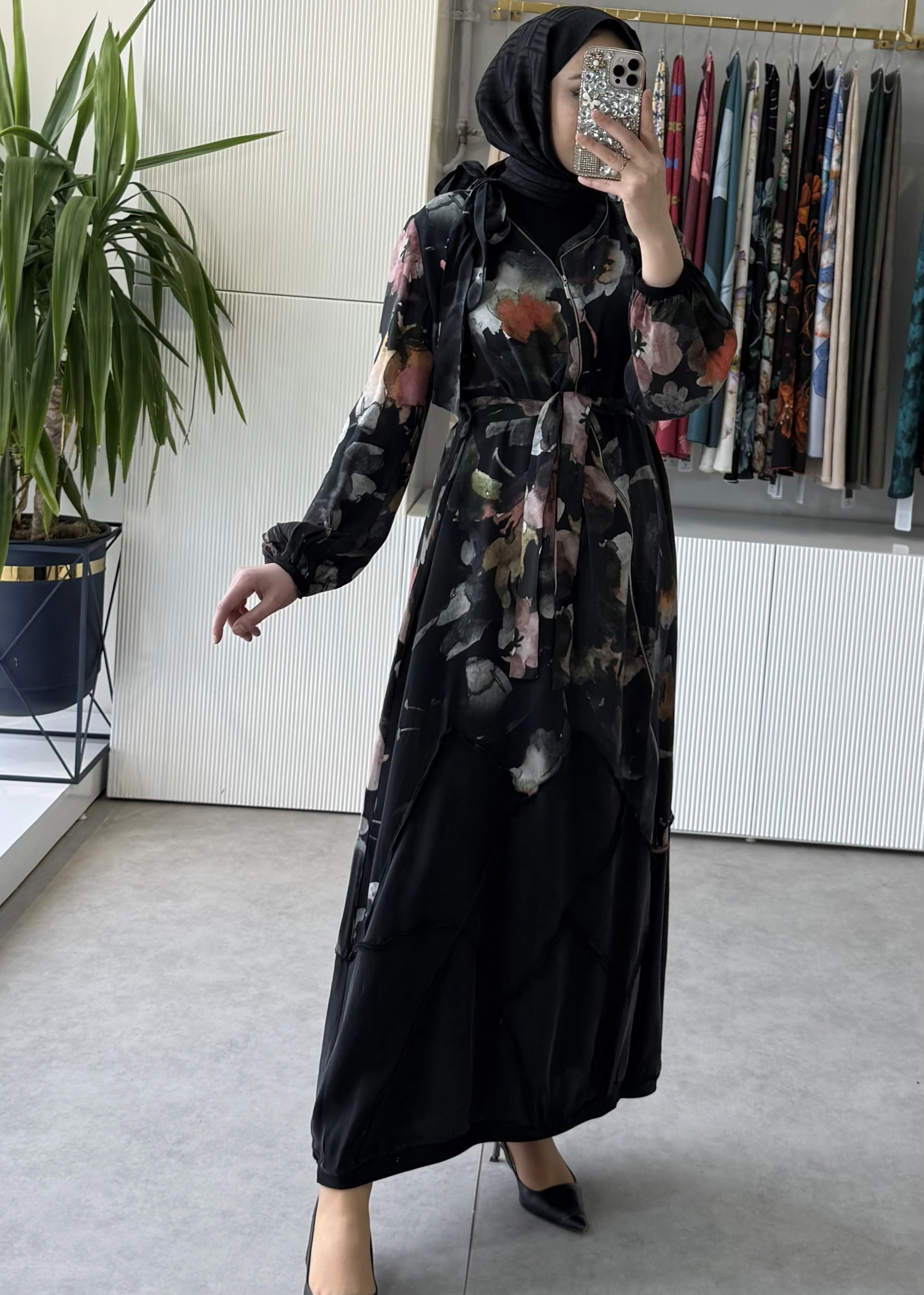 MissWhence 39802 İpek Elbise Çiçek Desenli