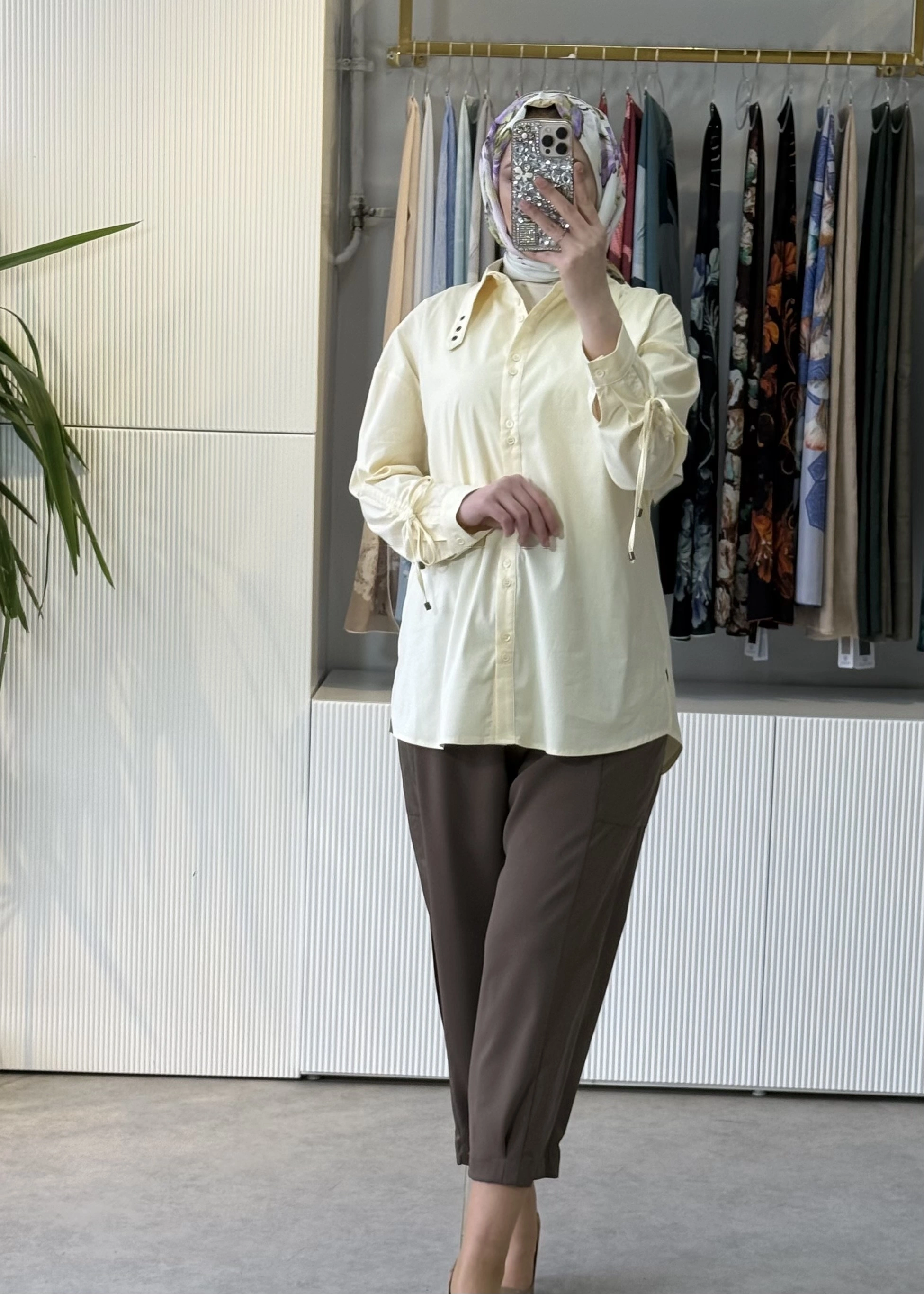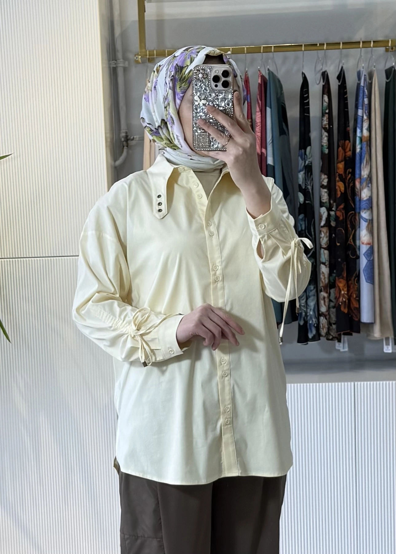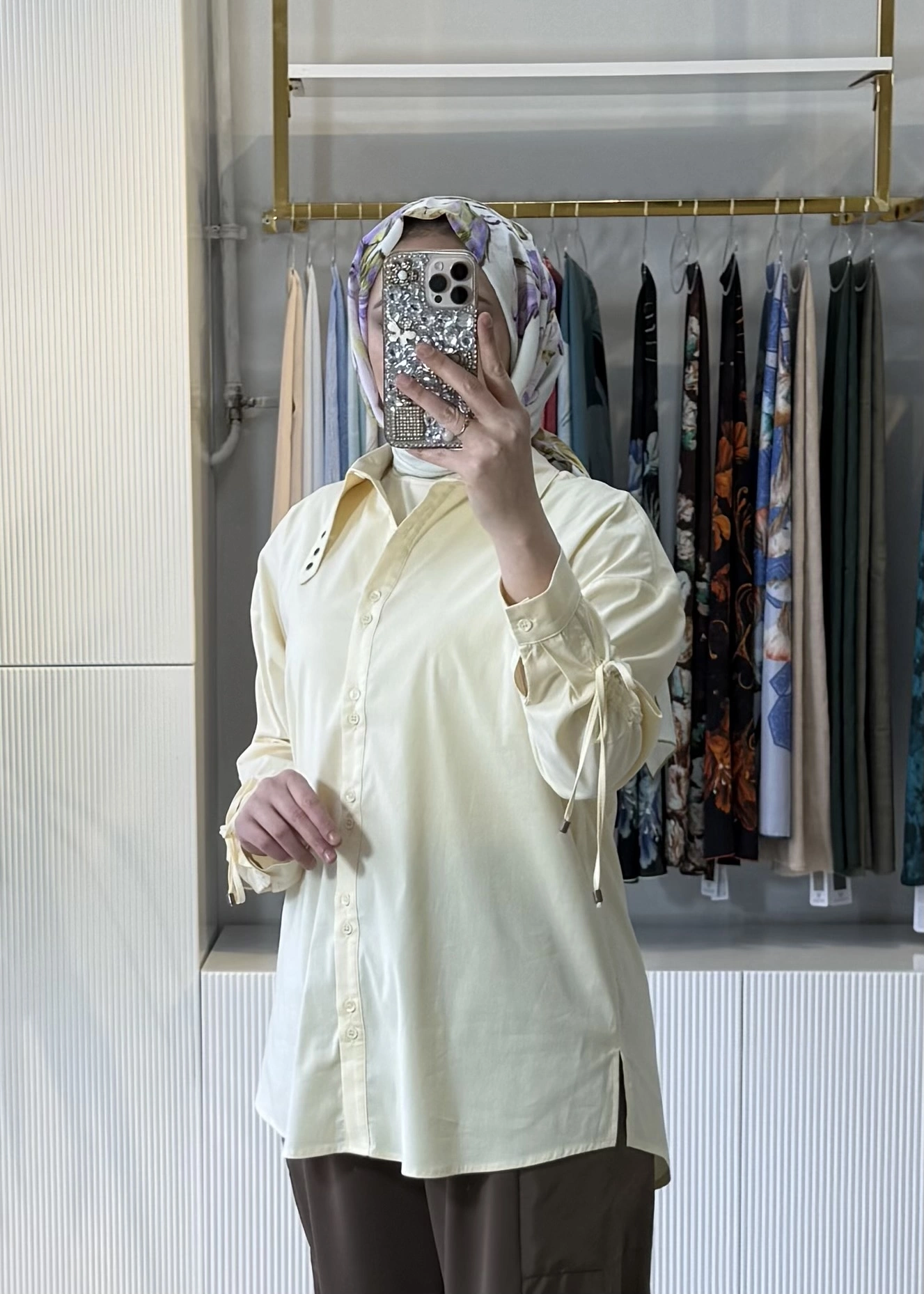 TIĞ TRİKO Kuşgözü Özellikli Yaka Rahat Kalıp Büzgülü Kol Detaylı Gömlek 4043 Sarı