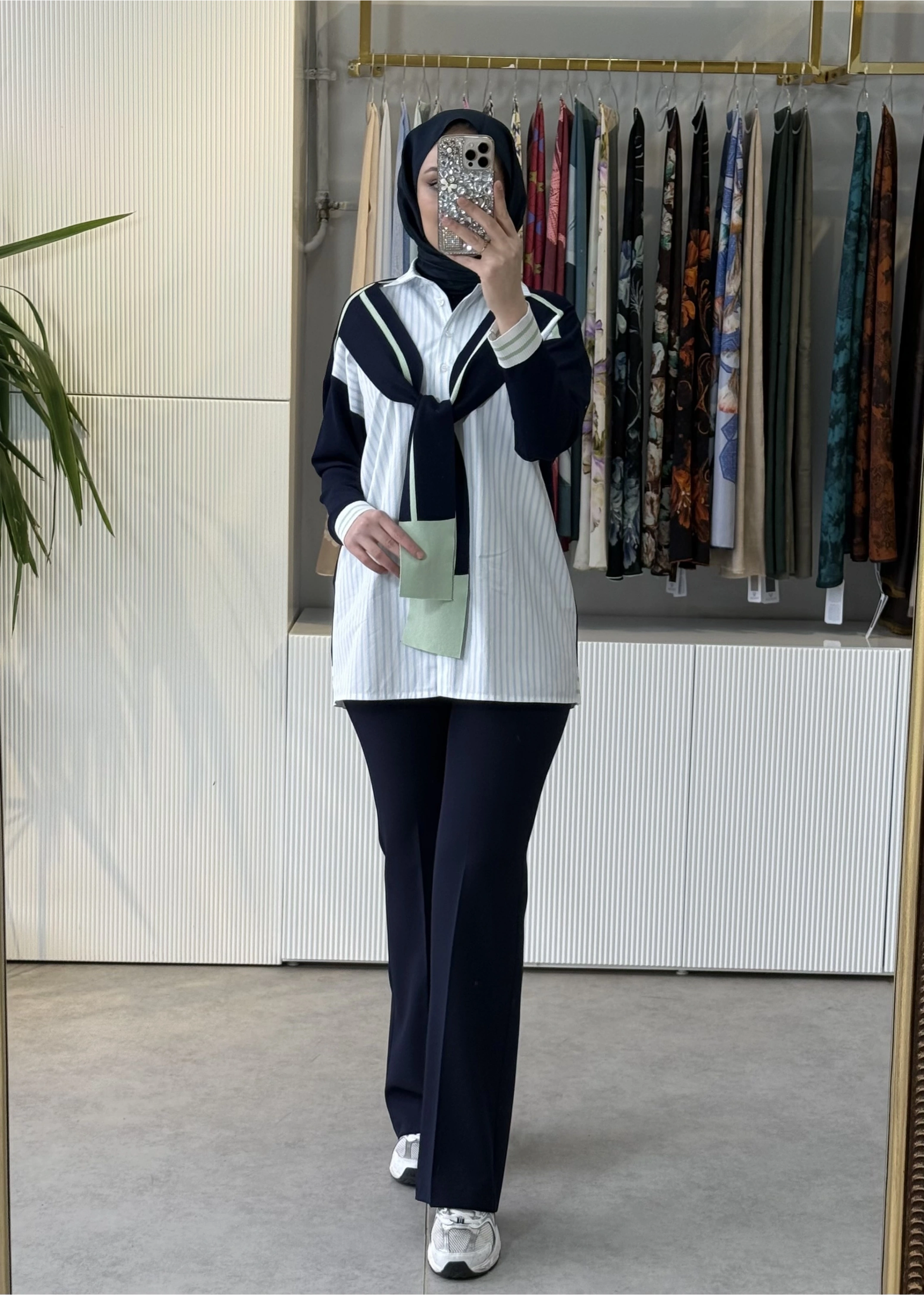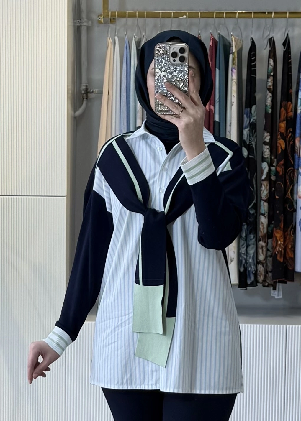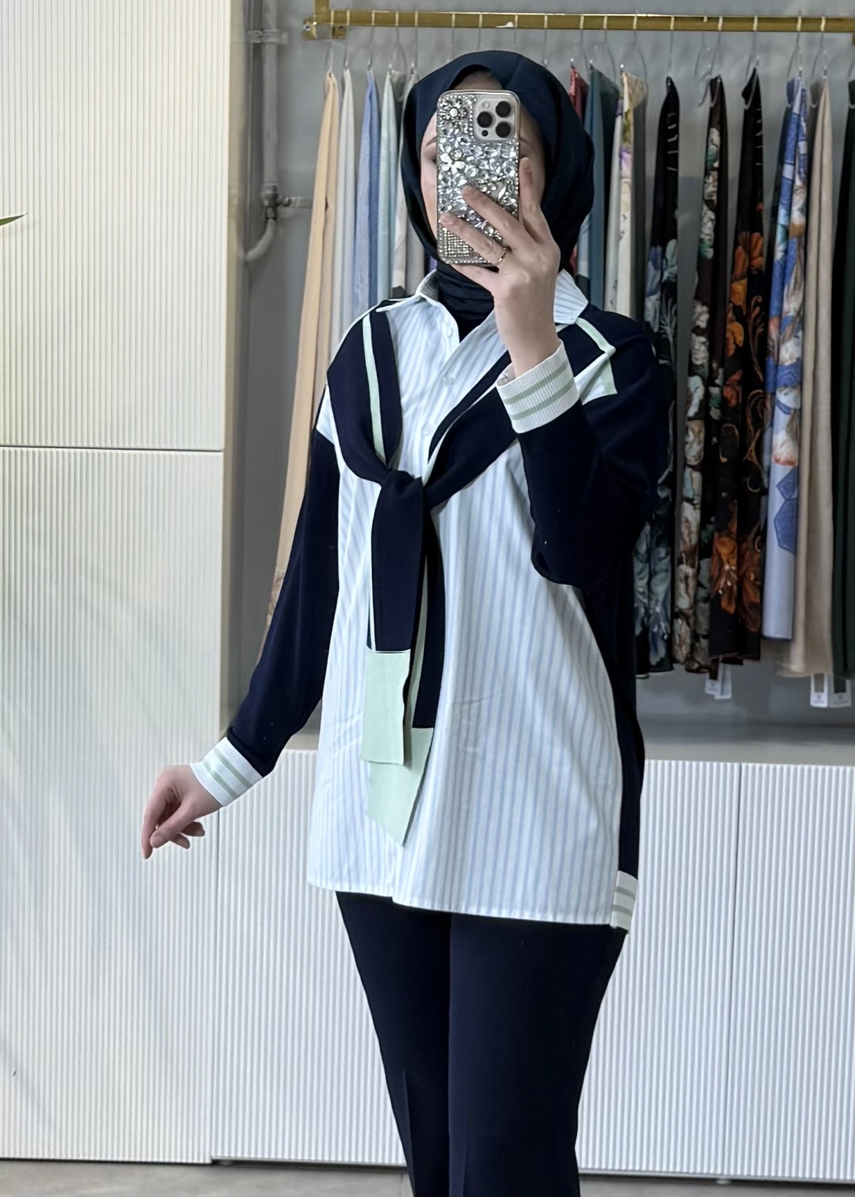 TIĞ TRİKO Önden Bağlamalı Triko Detaylı Gömlek Lacivert