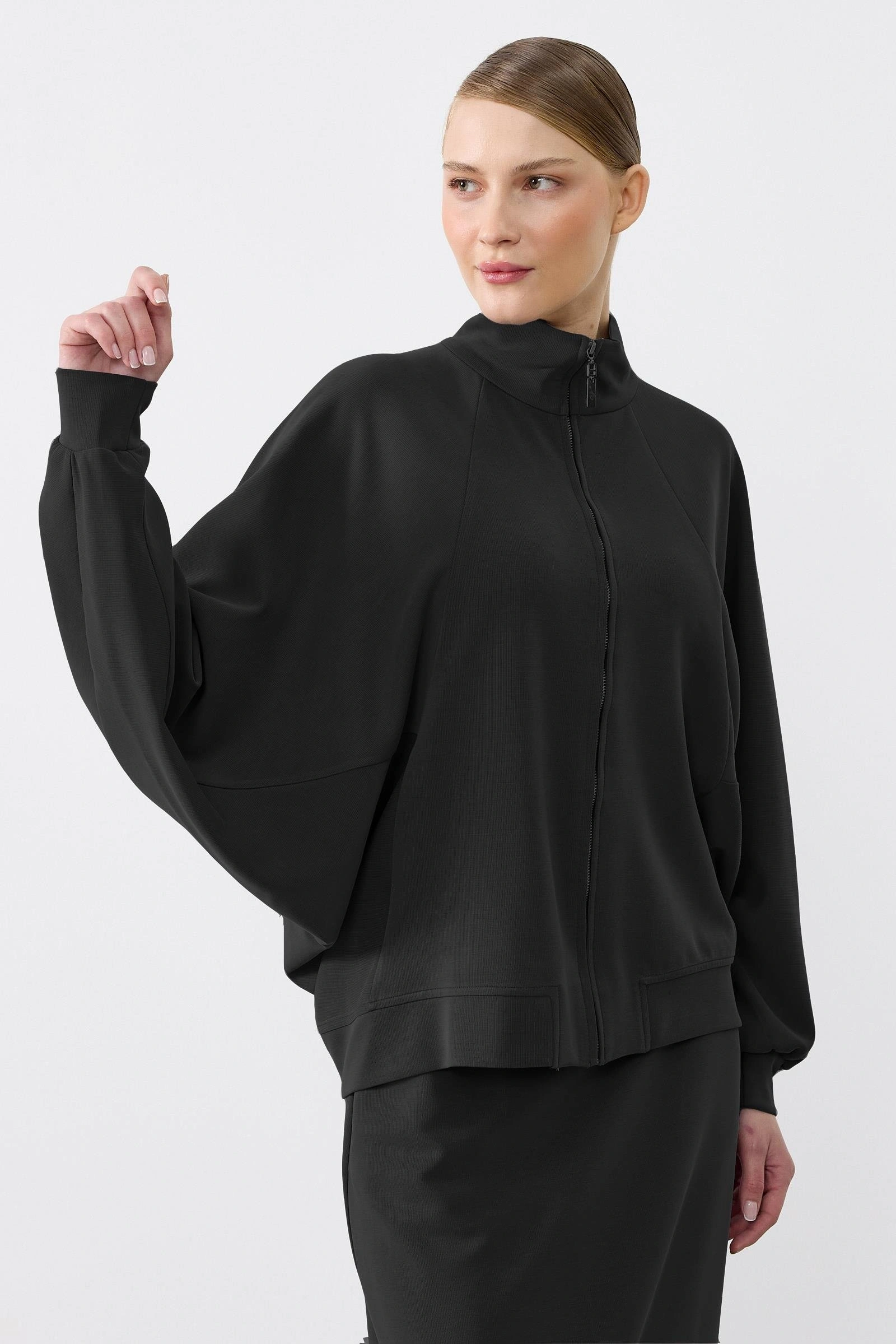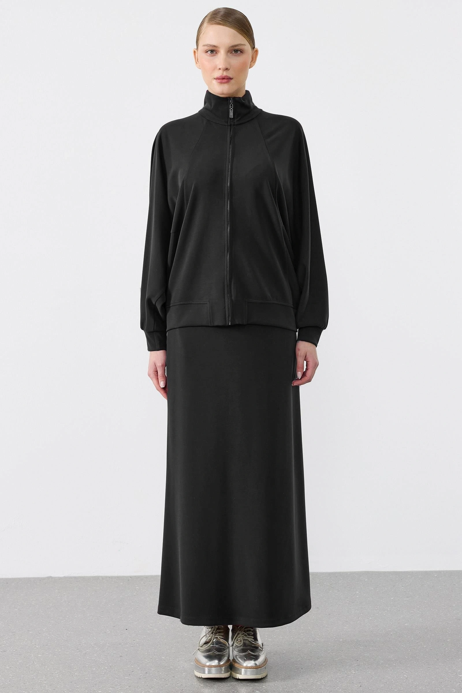 Tığ Triko Pilikaşe Detaylı Fermuarlı Hırka Etekli Takım SİYAH