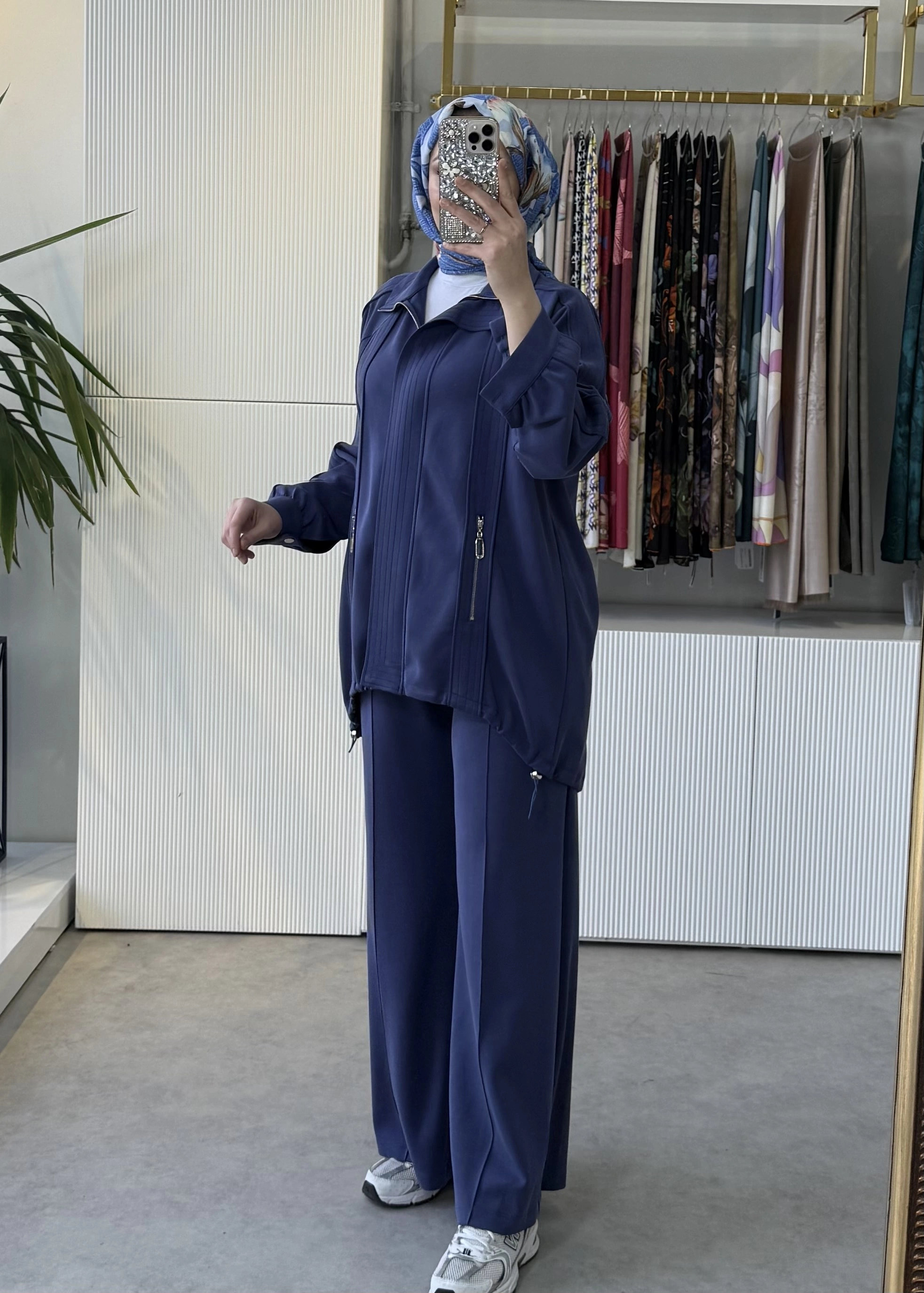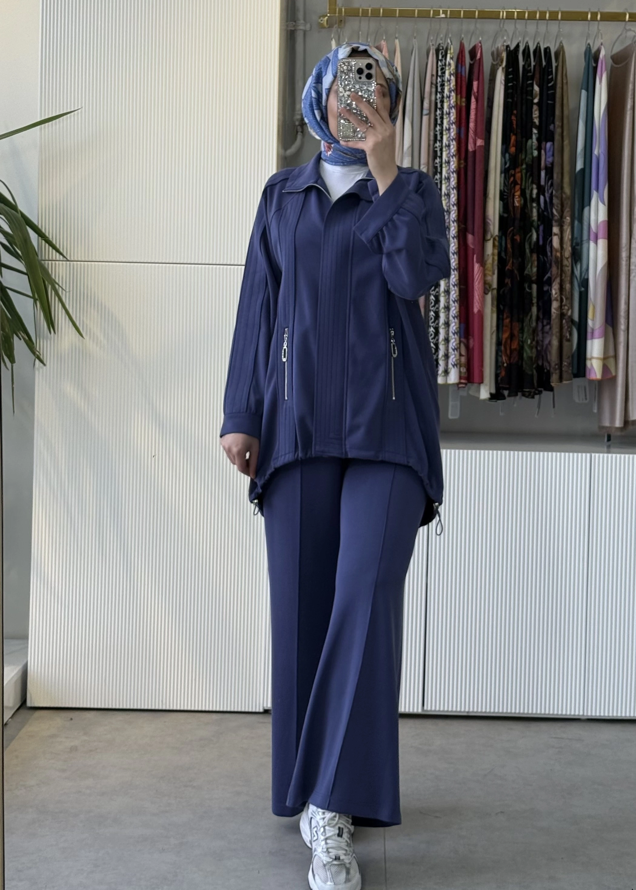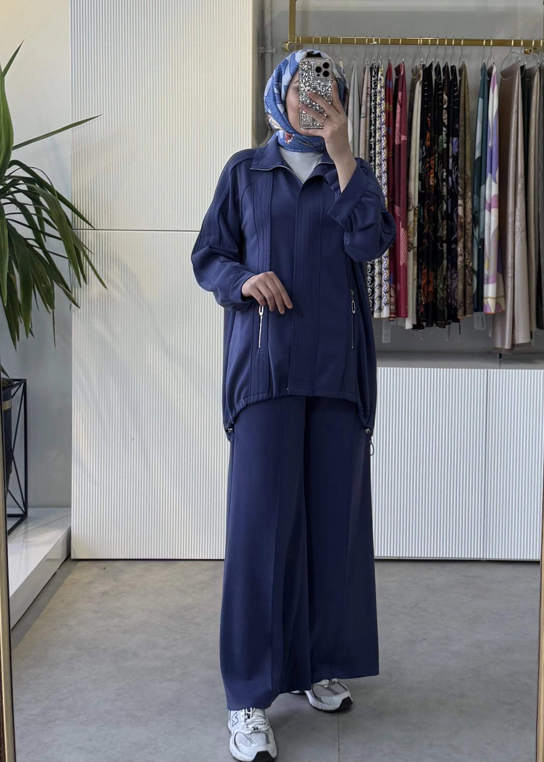 TIĞ TRİKO Spor Dikiş Detaylı Taşlı Elcikli Fermuar Cepli Pantolonlu Takım Lacivert