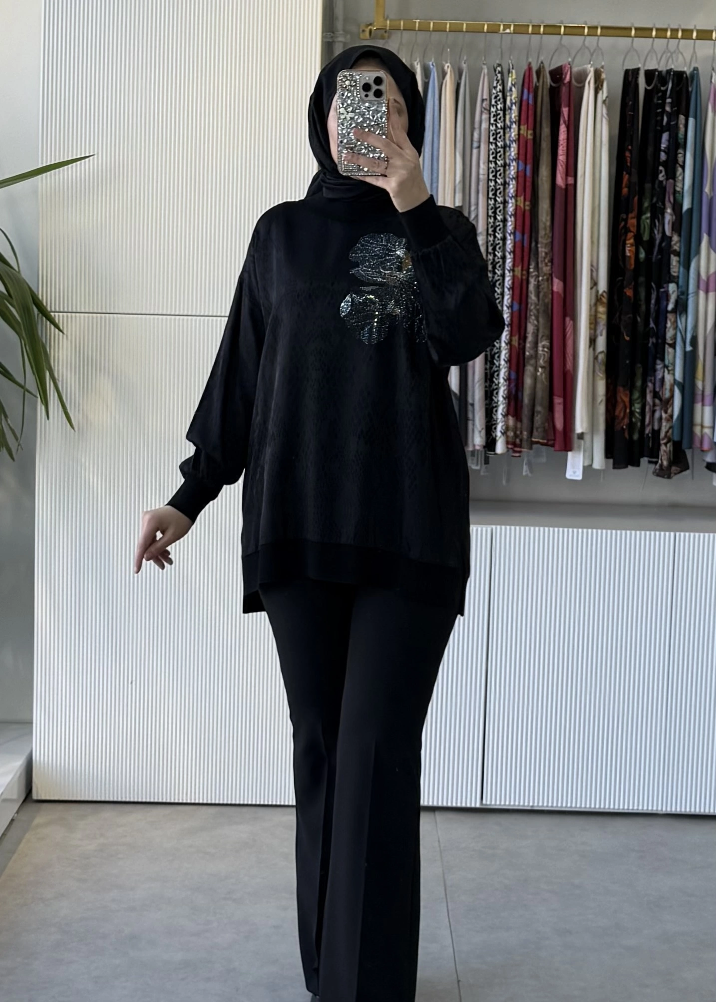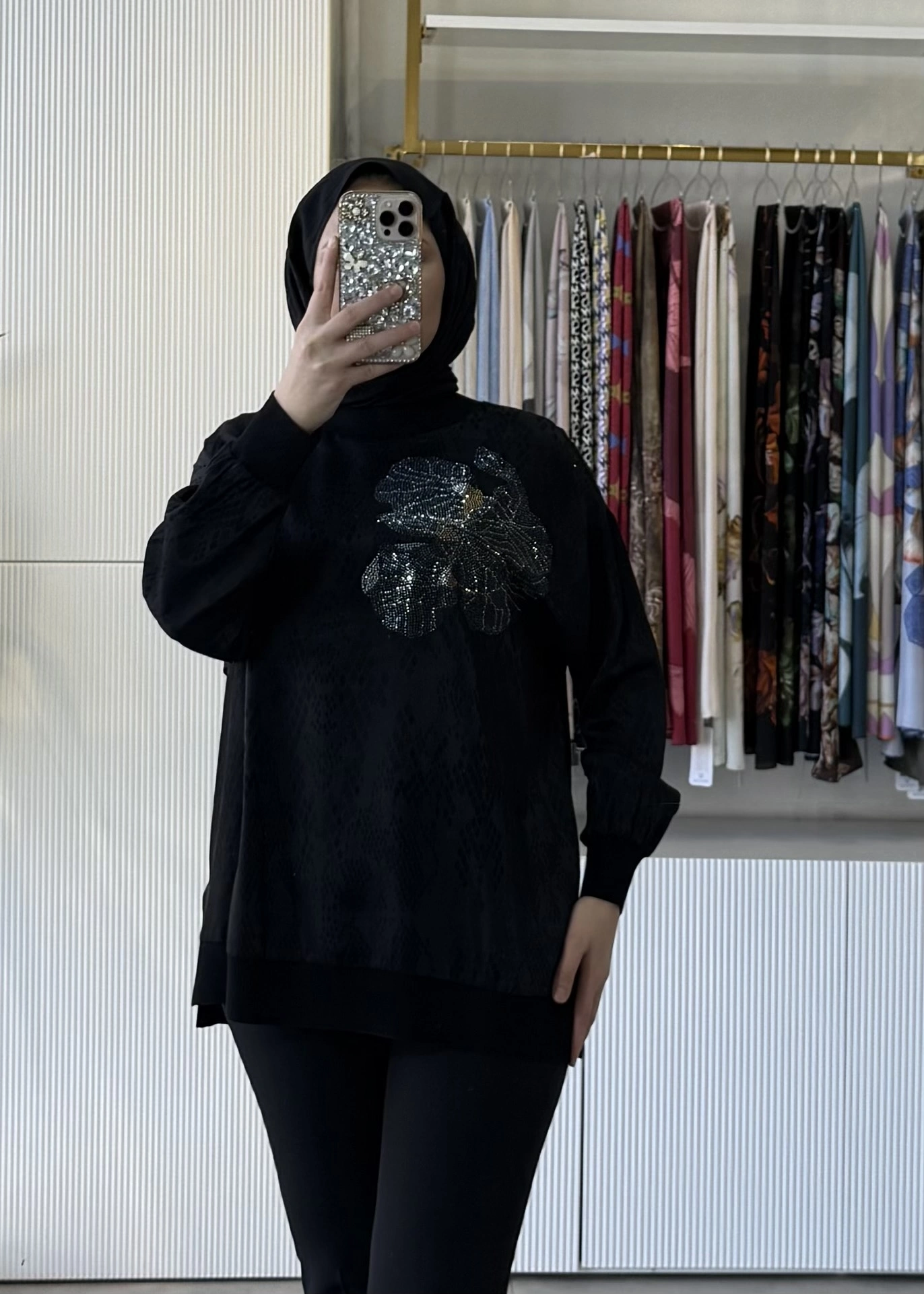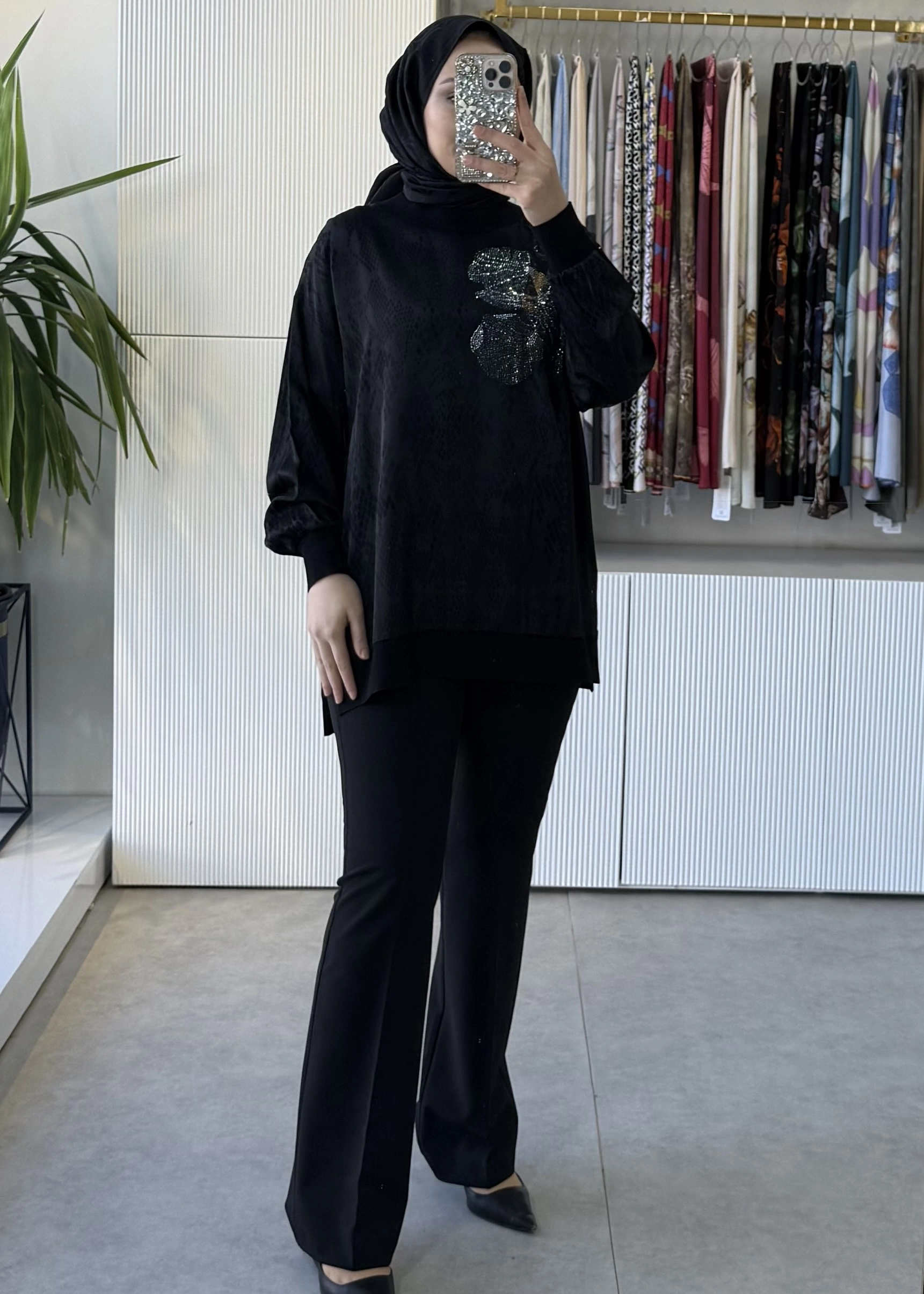 TIĞ TRİKO Taşlı Desenli Ribana Detaylı Tunik 4010 Siyah